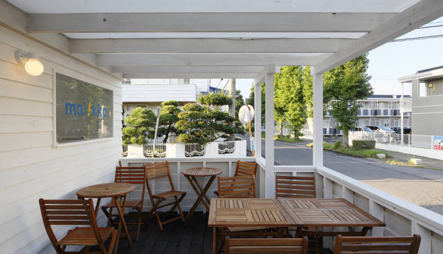 外のデッキコーナーはお菓子とコーヒーをいただきながら