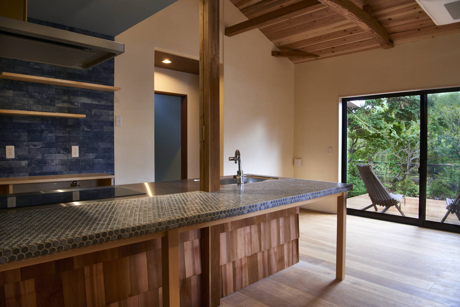 海に近い場所に建っている木造住宅のリノベーションです。使い方やイメージなどを整理してなるだけひと続きのなんとなくつながっている家をつくろうと考えました。