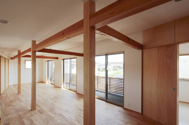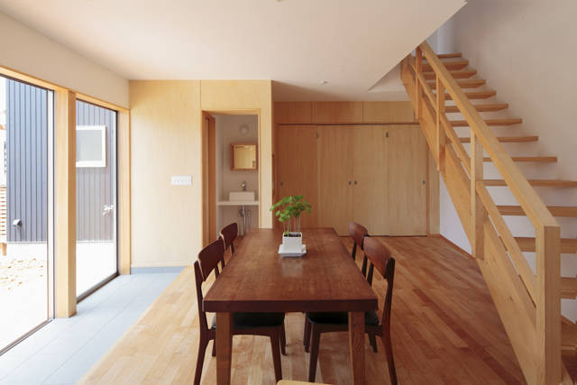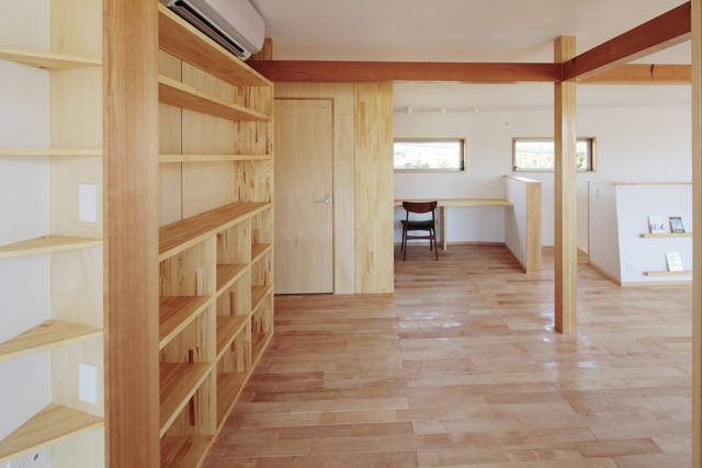カフェのようなリビングダイニングと図書館のようなファミリースペースを持つお家です。プライバシーを確保しつつ、何となくお互いの気配を感じることができる二世帯住宅です。