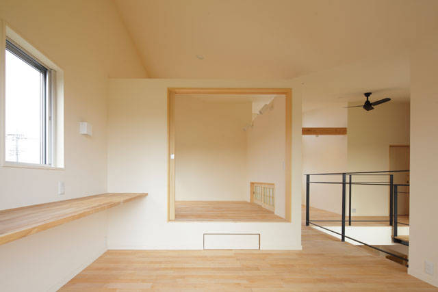 晴れた日はお庭で畑を耕し、雨の日は家の中でのんびり過ごす。そんなご家族のためのお家です。一見倉庫のような外観の建物に一歩足を踏み入れると、つくばの景色を抱え込む明るくのびやかな空間が広がります。