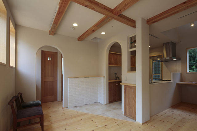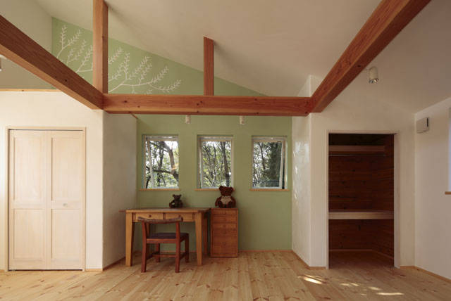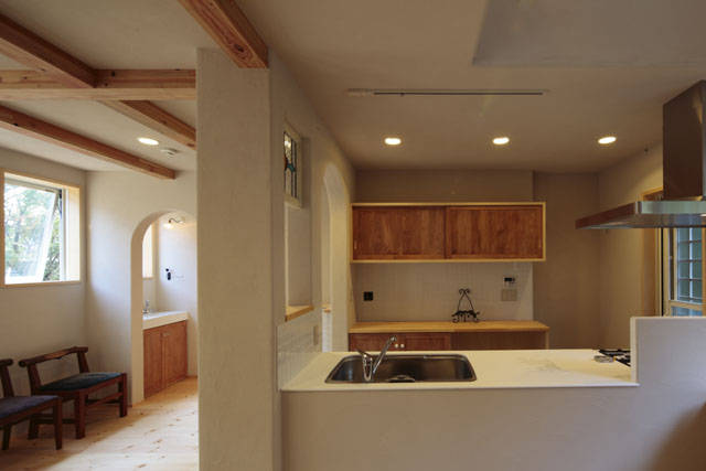泥壁工法を採用して空気がとってもきれいなおうちです。かわいらしく、とてもやわらかい空間が生まれました。