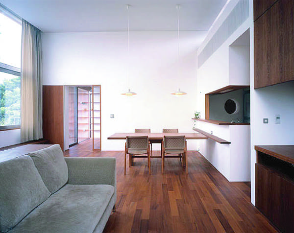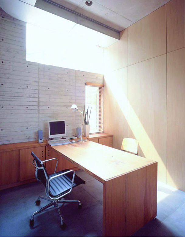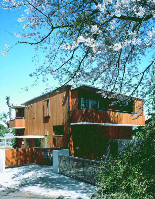 小高い丘の中腹にある緑に囲まれた事務所併設住宅。敷地にあった欅の木を製材し玄関ドア・テーブル・和室の柱・鴨居・床床・座卓など部屋の随所に用い想い出を受け継いでいけるような100年住宅を目指して創りました。