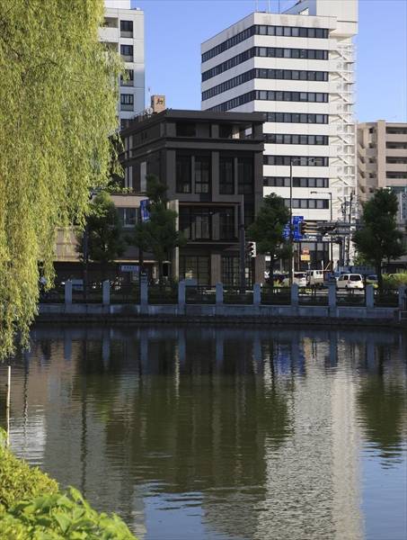 松山城の堀の畔に建つテナントビル 松山市のシンボル 「松山城」 「道後温泉」 「坊ちゃん列車」 「文学」・・・ その懐かしさを感じさせる落着いた佇まいは、主張し過ぎず、しかしながら街の景観に積極的に関わり、 人の記憶に残っていくというプログラムにより計画されている。