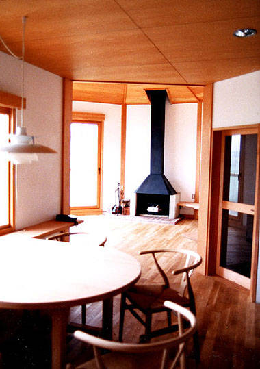 母と娘の為の小さな別荘であるが、暖炉を囲んでゆったりと時が過ごせるように工夫したシンプルな構成になっている。