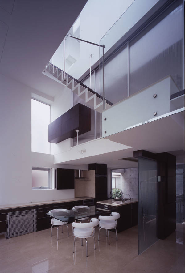 道路側と距離をとりながら、都心でも開放的で柔らかな光を取り込むことができる住宅を考えた。