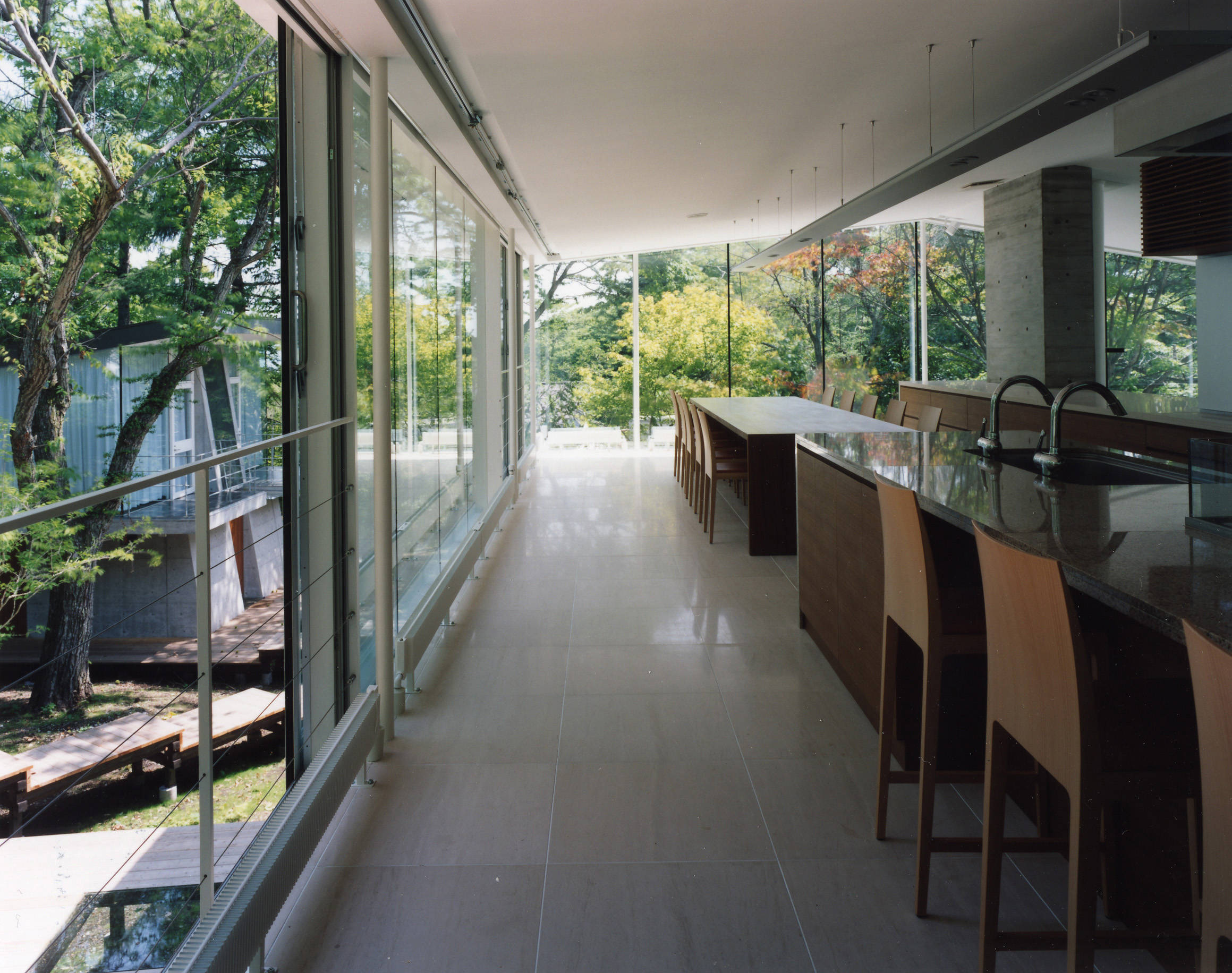 また、その外周をガラスで囲むことによって、森の中を散策するように室内を移動し、建物を囲む木々のさまざまな表情を読み取ることができる。
