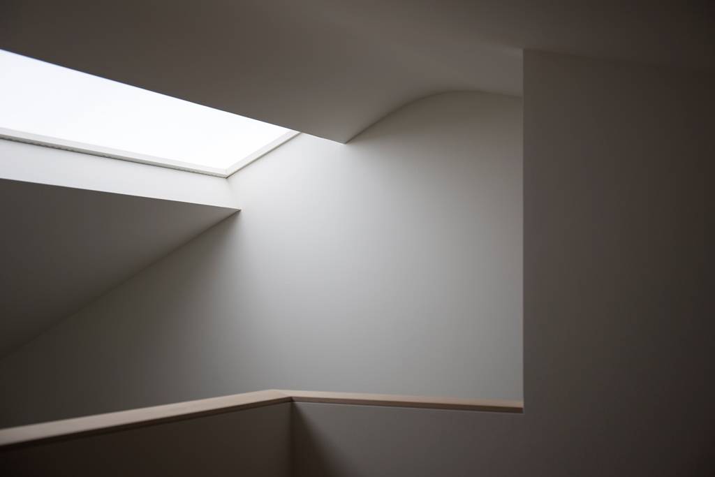 外周部に各室を配したため内側となる「玄関ホール~廊下~LDK」が暗くなるため、トップライトを設けてやわらかな拡散光を取り入れている。
