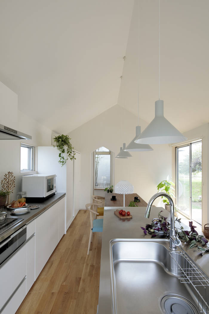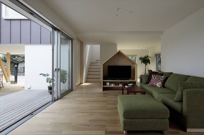 中庭へつづくエントランスのピロティは、昔のいえの縁側の下のような、土間のような場所。虫かごをおいたり、雨を眺めたり。 ただの入り口ではなくて、活動の場。なにかの居場所。