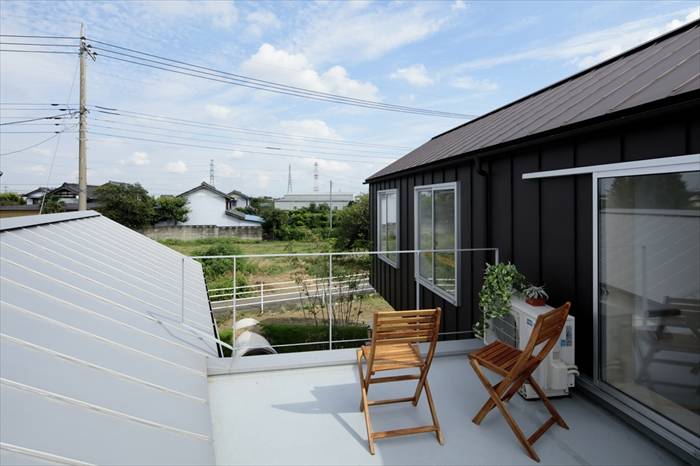 北側に太陽光パネル、南側に親世帯の暮らす母屋、かつて古い農家住宅があった所が今回の計画地で、太陽光パネル に影を落とさず、母屋からの適切な距離をとるというのが課題。
