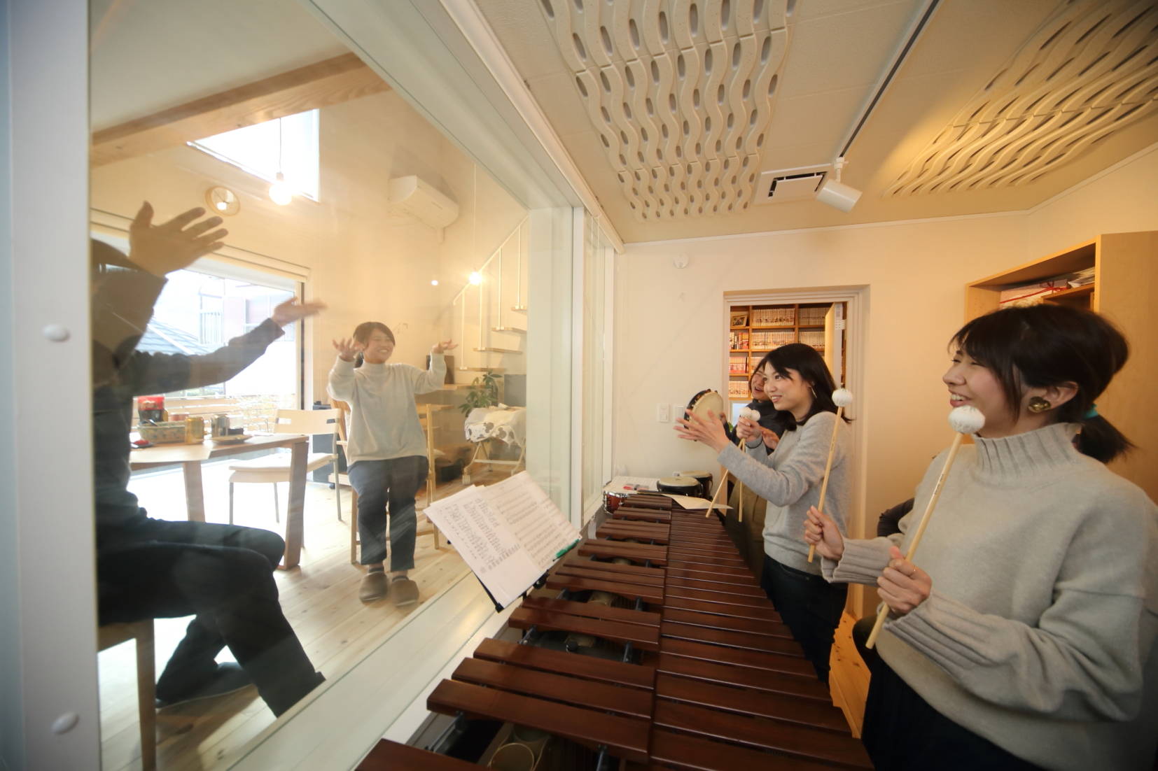 そして、音楽室はガラス越しにダイニングやリビングとつながっています。楽器を演奏し練習することが、特別ではなく生活の中に溶け込む暮らしができるようになっています。