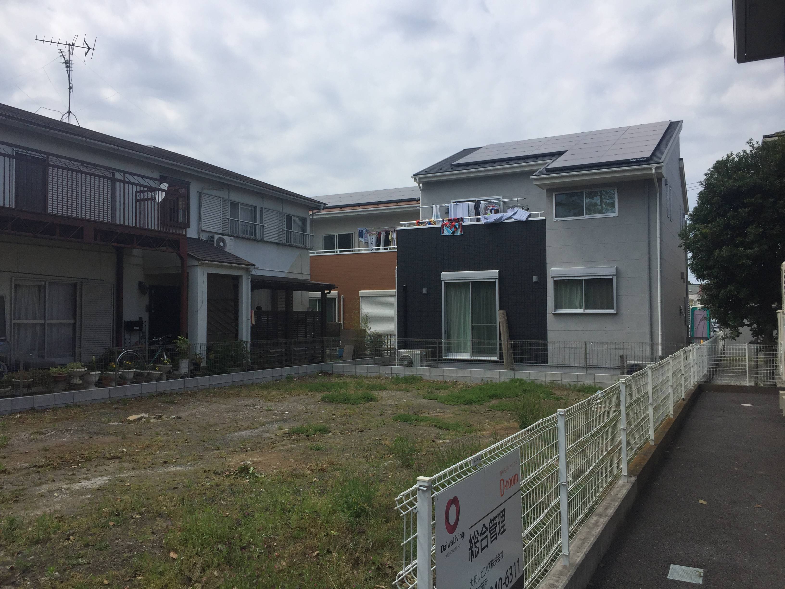 南の道路側に対して5mセットバックをして、駐車場としています。東側に引きを取り、庭を設けています。屋根はガルバリウム鋼板平葺き。最上部には屋根をえぐるように屋上テラスがあります