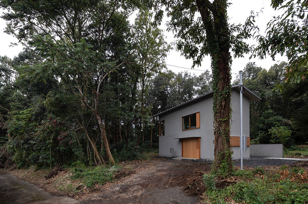 敷地は富士山南麓の町の北部に位置する。建て主の父親が古くから所有する農地で、周囲を20m以上ある樹木に囲まれ、北側には比較的大きな工場がこの敷地を見下ろすように建っている。鬱蒼とした樹木群と工場、道路側のすでに使われていない家屋、敷地から見える仮設小屋など、全体として陰鬱で雑多とした印象であった。