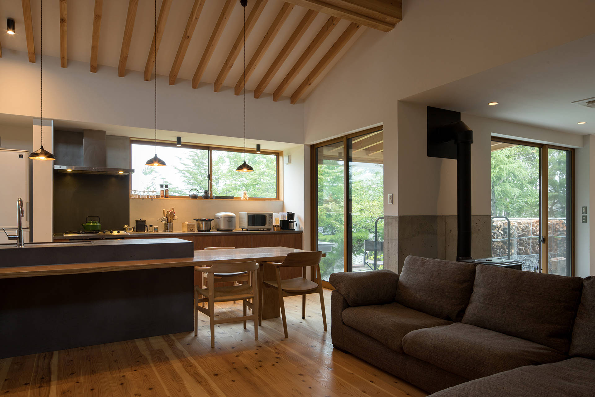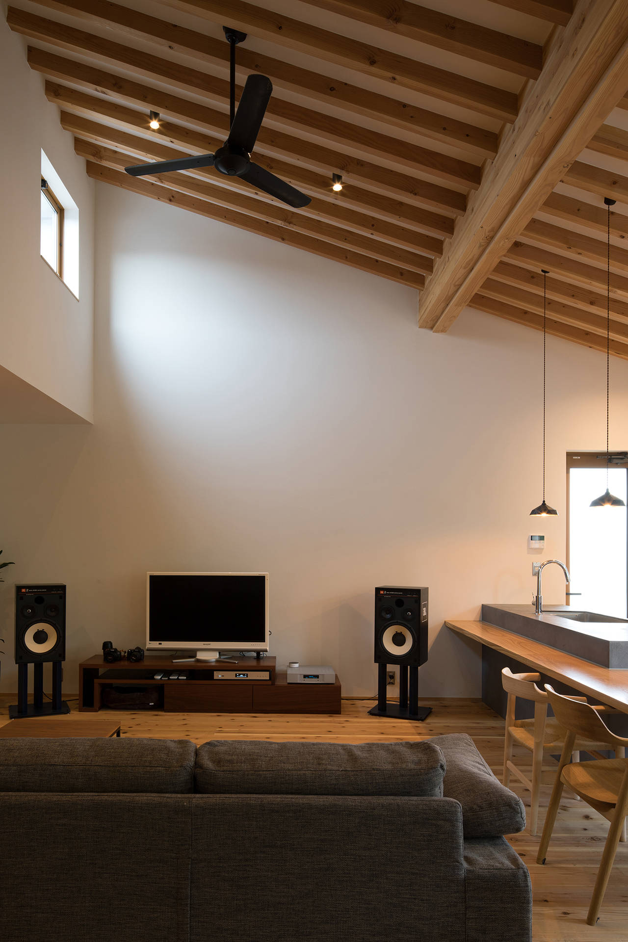 住宅内部は北側緑地帯への開放性に重点を置き、採光は吹き抜け上部の南側ハイサイドライトより取り入れています。