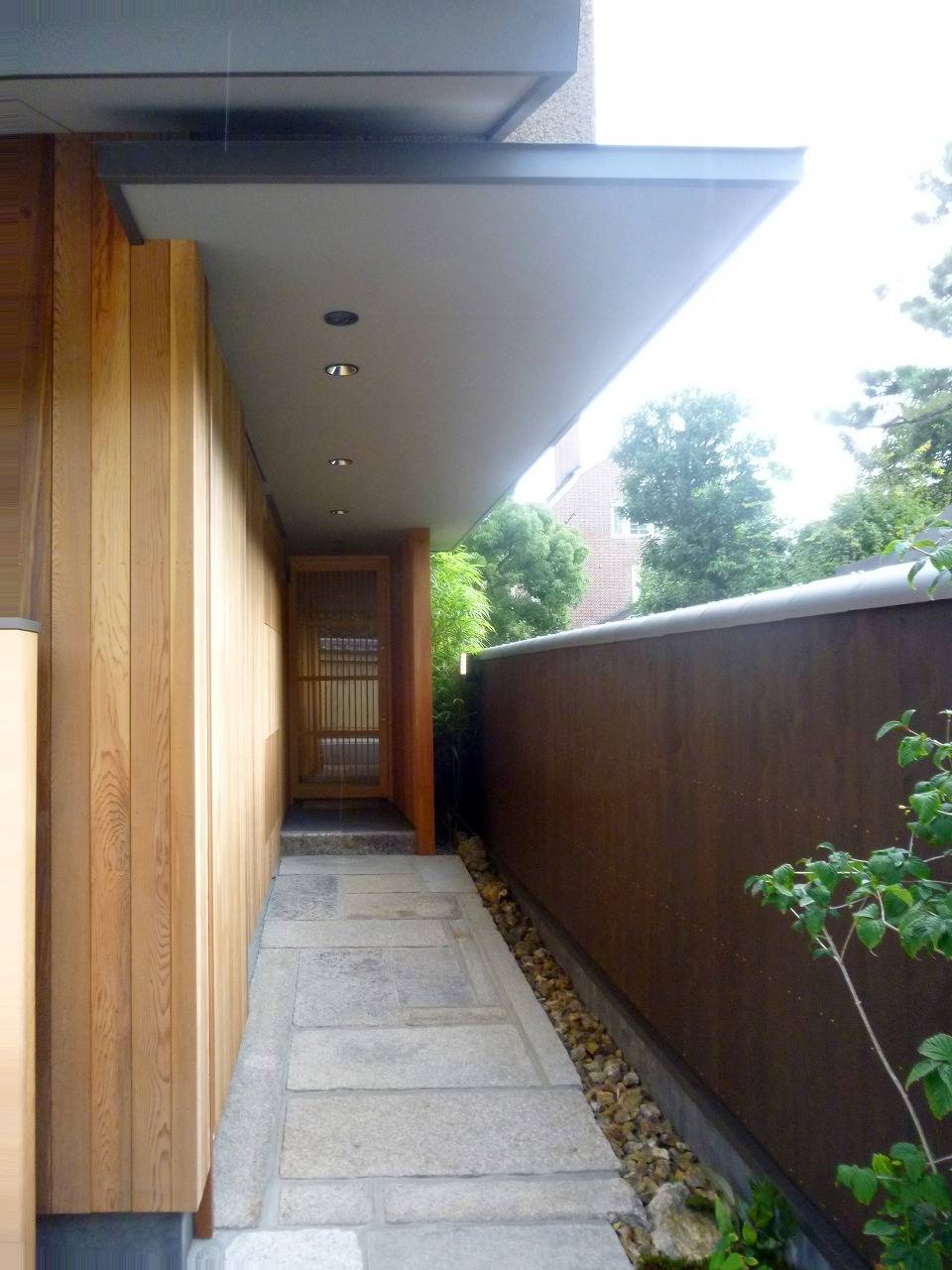 端正な佇まいの外観から玄関に至るアプローチ部分には、露地の風情を挿入しました。