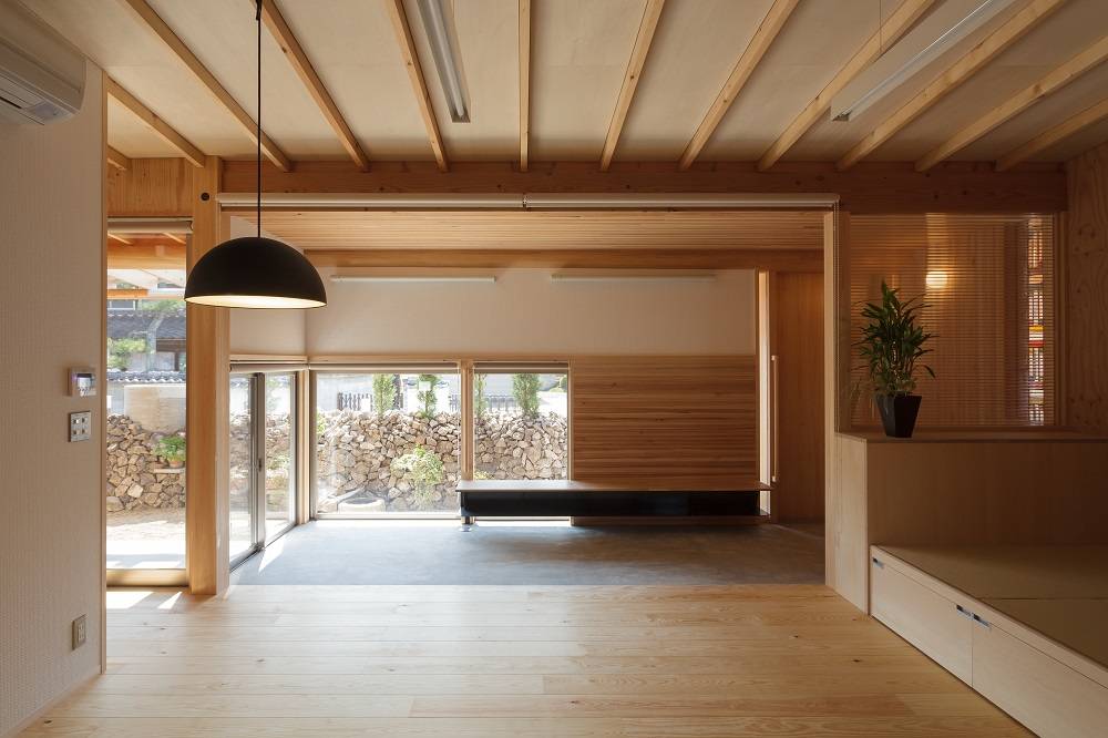 岡山県東部の特別史跡「閑谷学校」に近い、備前市吉永町にできた平屋の住宅である。お母さんと3人の成人した子供達の4人家族の住まいを、限られた予算で建てることが求められた。