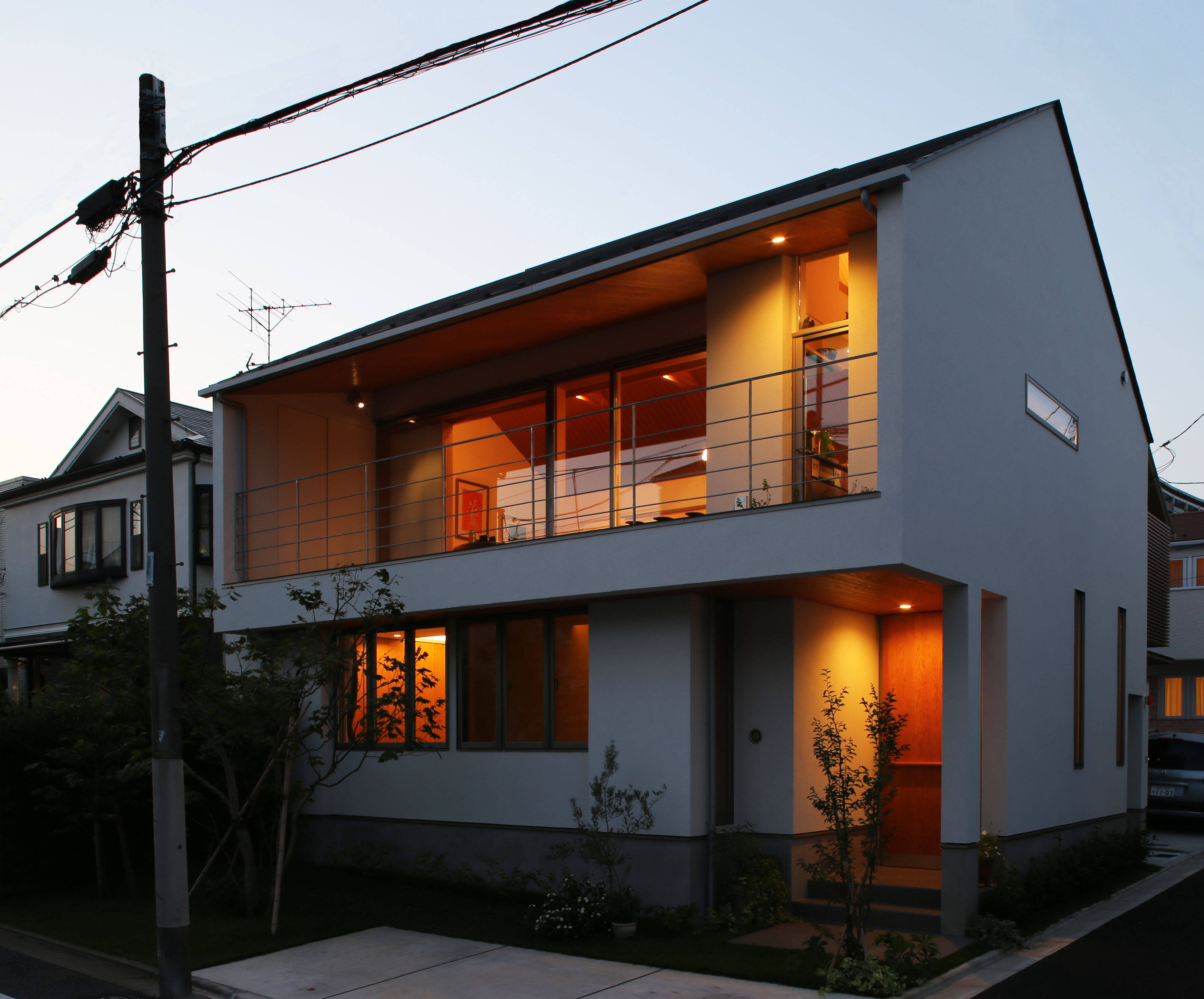 シンプルな切妻屋根のシルエットの中に、リビングに連なるバルコニーを組み込み、広がりある住空間を展開しました。