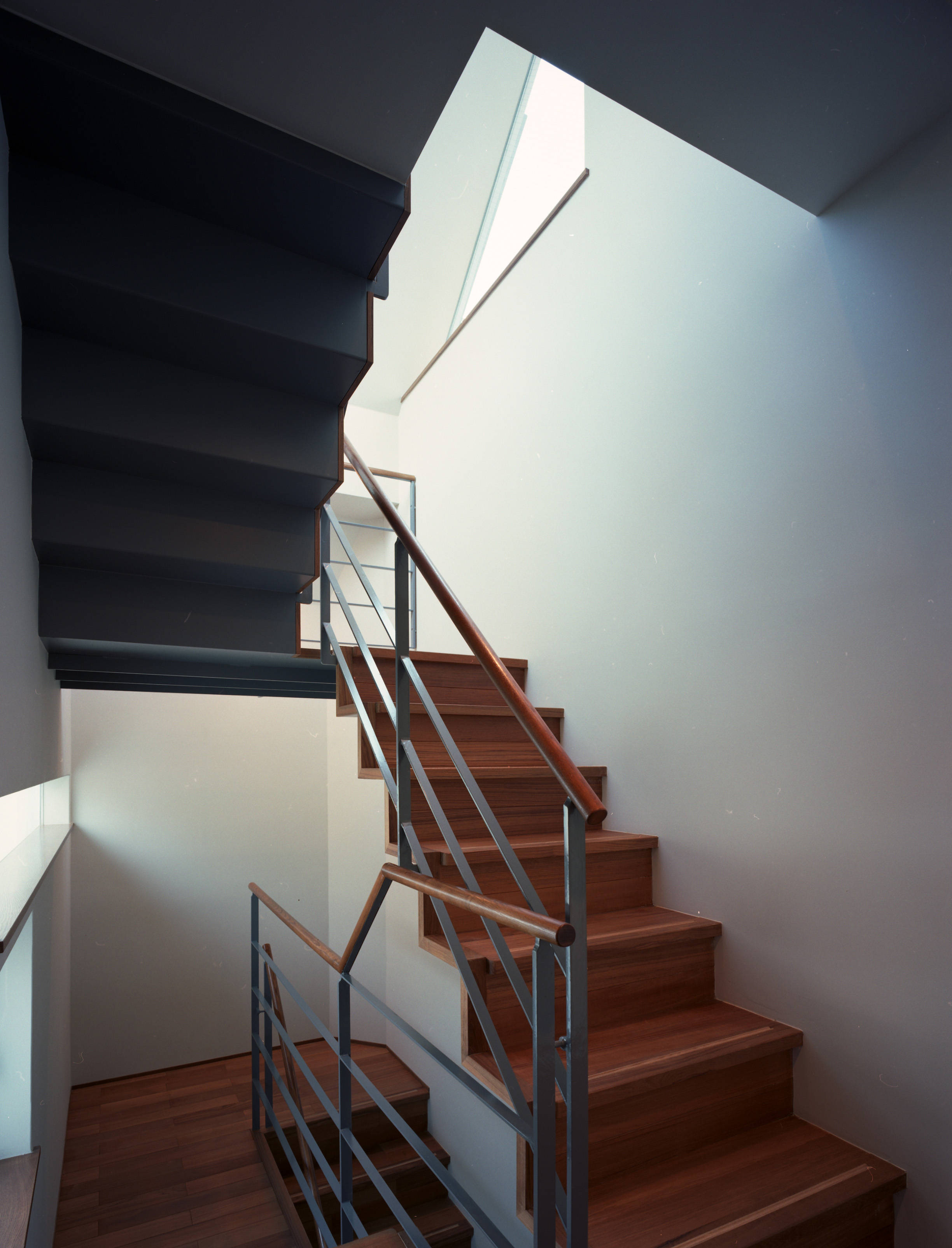 日常空間は、世帯毎に1階・2階に分けて、コンパクトに配置し、地階と3階に、非日常的なリフレッシュのための空間として特徴ある空間を展開しました。