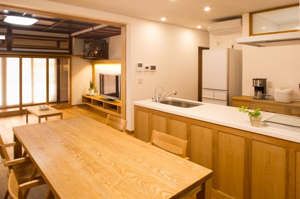 老朽化した台所まわりを中心として居間空間、子世帯空間の改修工事です。