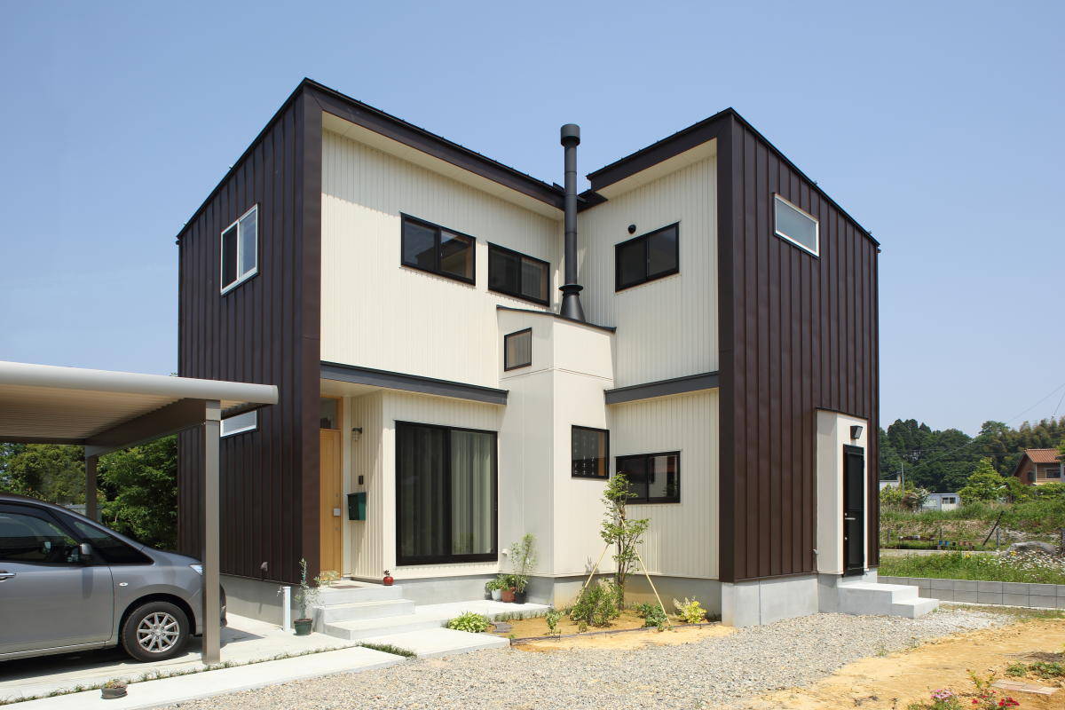 運動公園に隣接したゆったりした敷地に建つコンパクトなイエです。