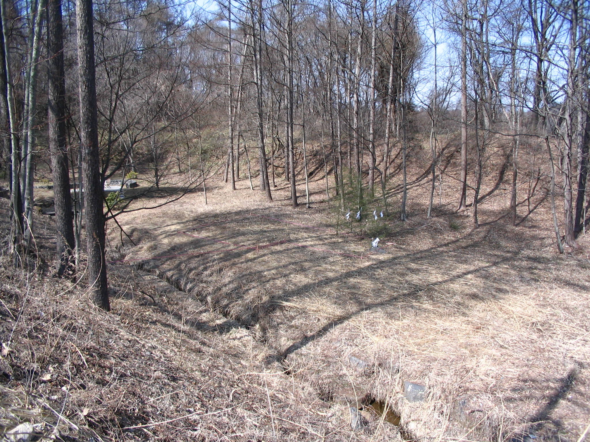 敷地は、北方向に下った傾斜部と、平坦部を、緩やかに流れる小川により分けられており微かに聞こえる水の音、木々のせせらぎの心地の良い、とても安らぎのある場所。