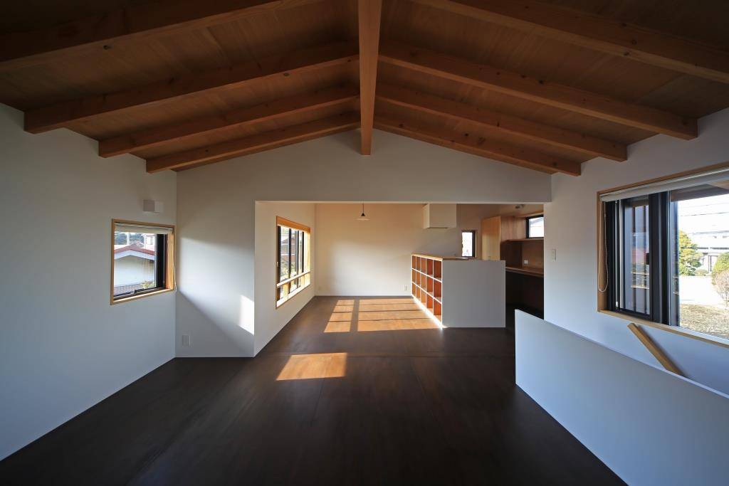 2階の居間からは、北側の畑を介し桜の大木を望むことができ、春には花見ができるように開口を配した。