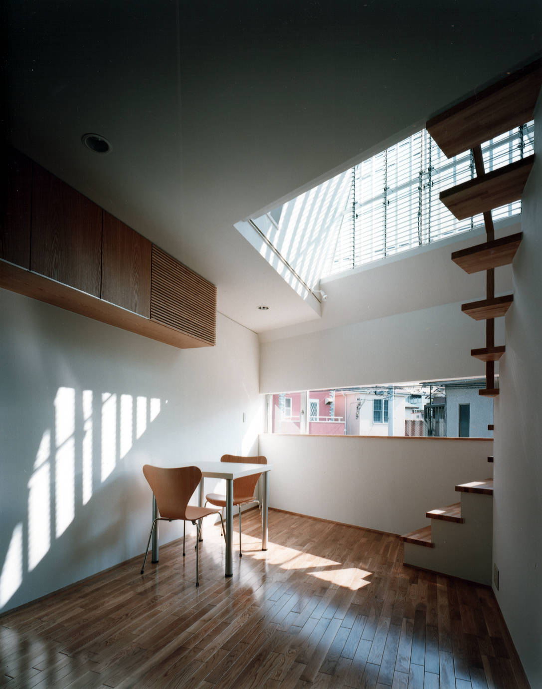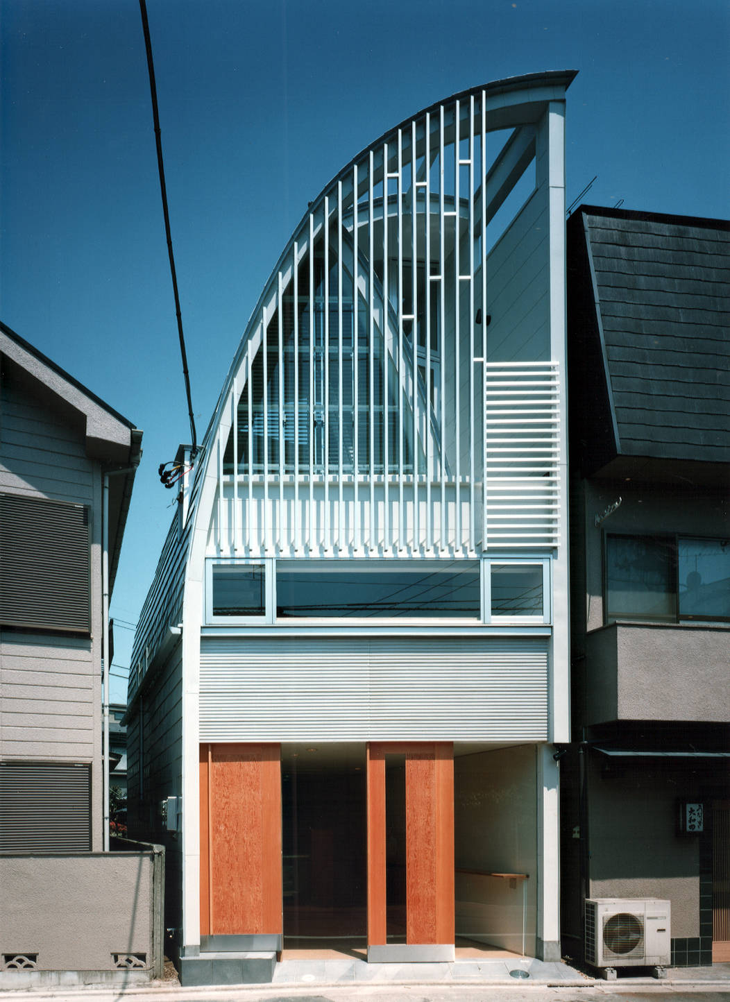 巾2間、10 坪という狭小地に建つ店舗併用住宅です。