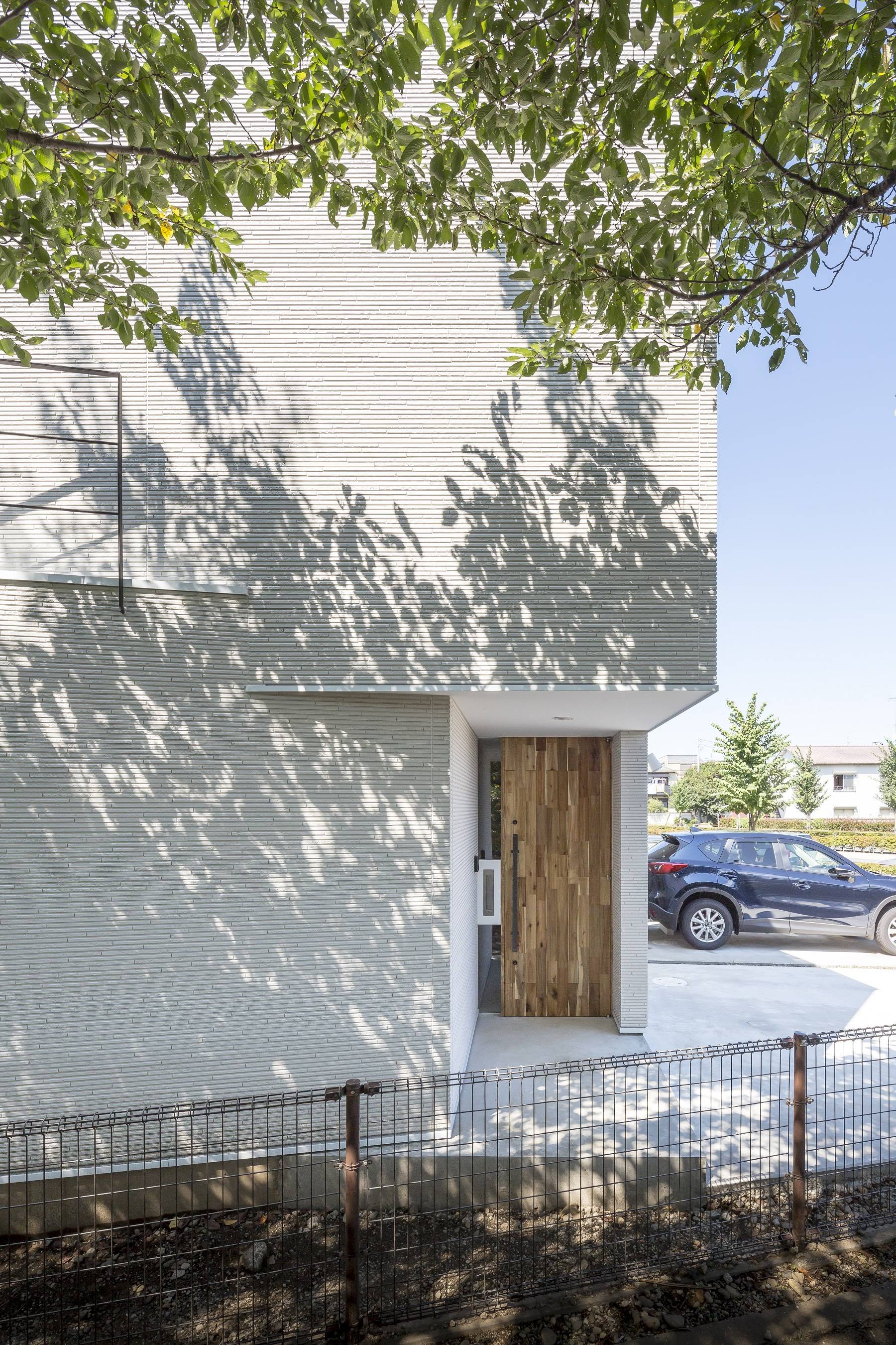 桜並木沿いの敷地に建つ、木造2階建ての住宅です。