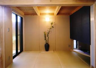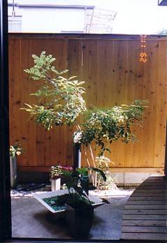 中庭 隣地側に板塀を設けてプライバシーを確保
