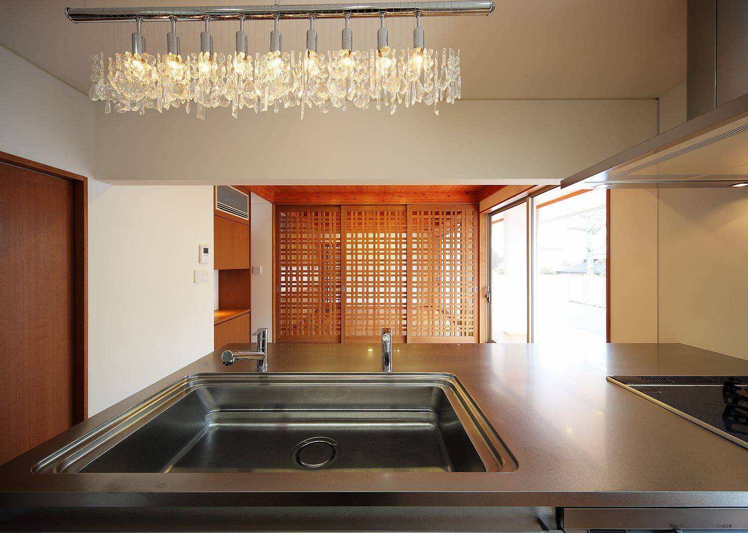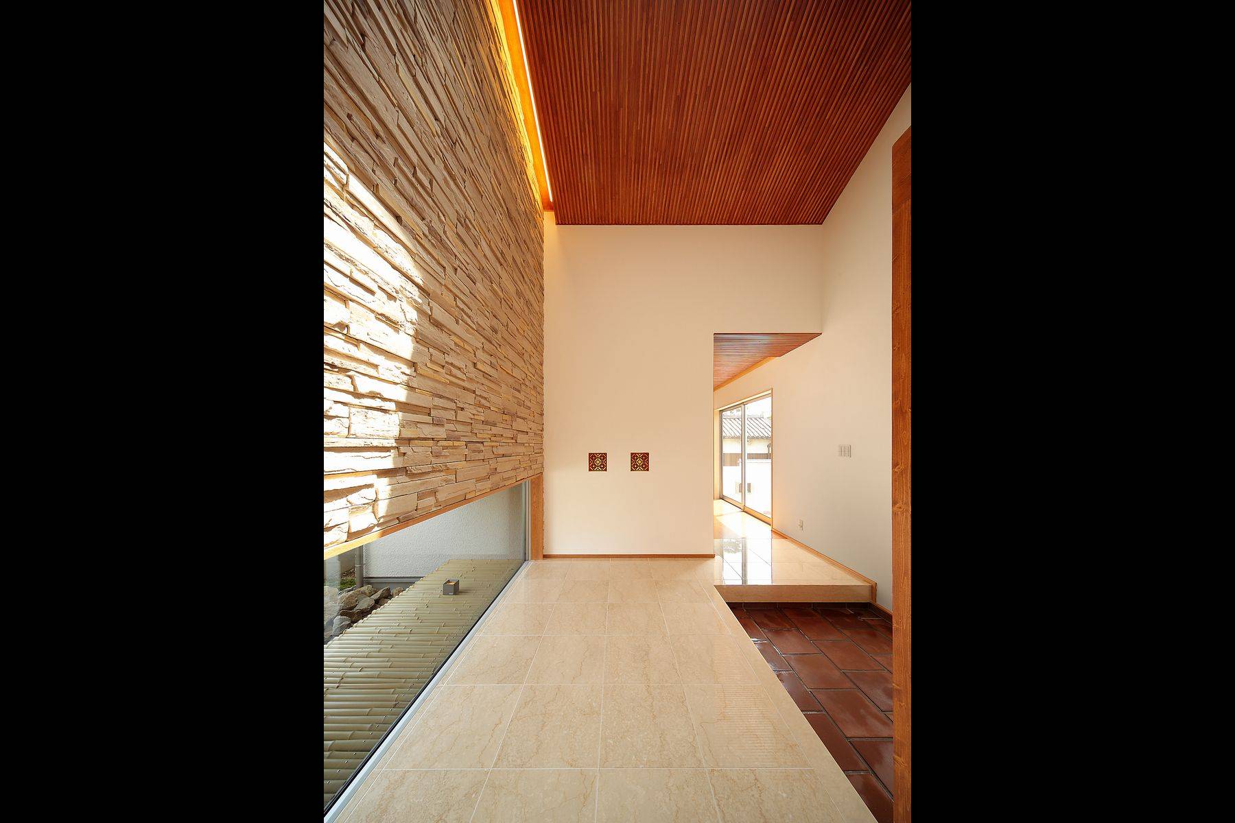 敷地が旧西大寺境内で、周辺が「天平の甍」を彷彿させる環境に在ったので白壁に日本瓦葺きという外観でデザインしました。内部は一転、お施主様のお好みでチーク材を主体としたインテリア、シノワズリーの意匠もスパイスとして利かせて素材を尊重したデザインとしました。