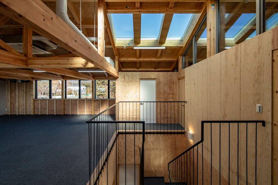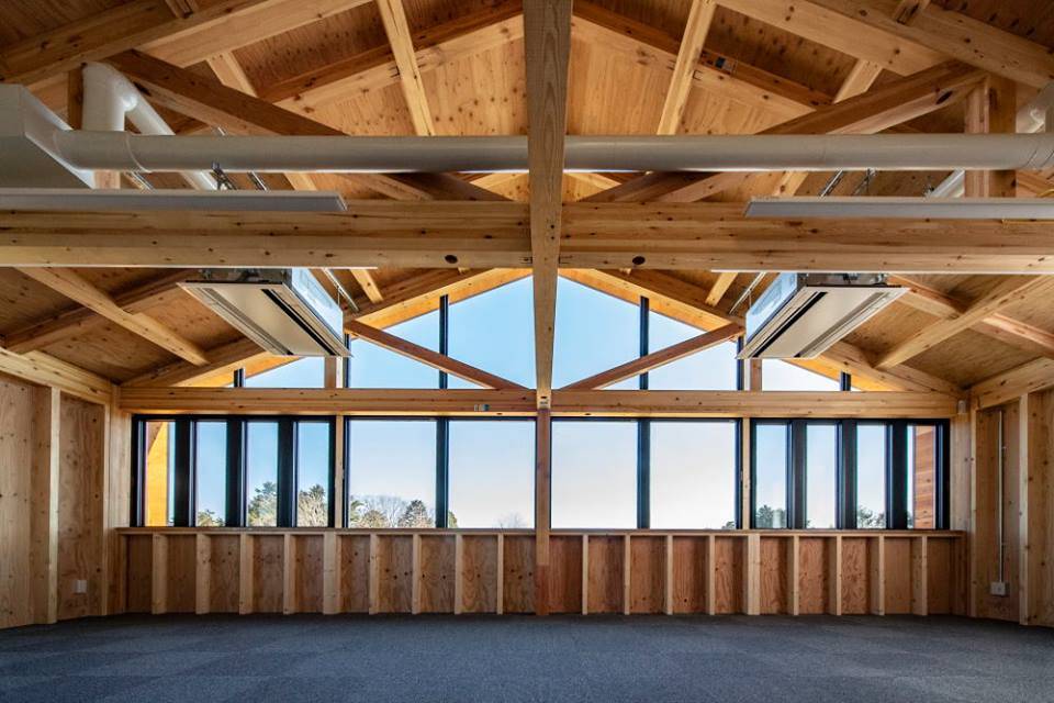 寒冷地仕様の外断熱の木質のアトリエ、執務空間は極めて快適で、比叡山の山頂近くにあることを忘れさせてくれる。