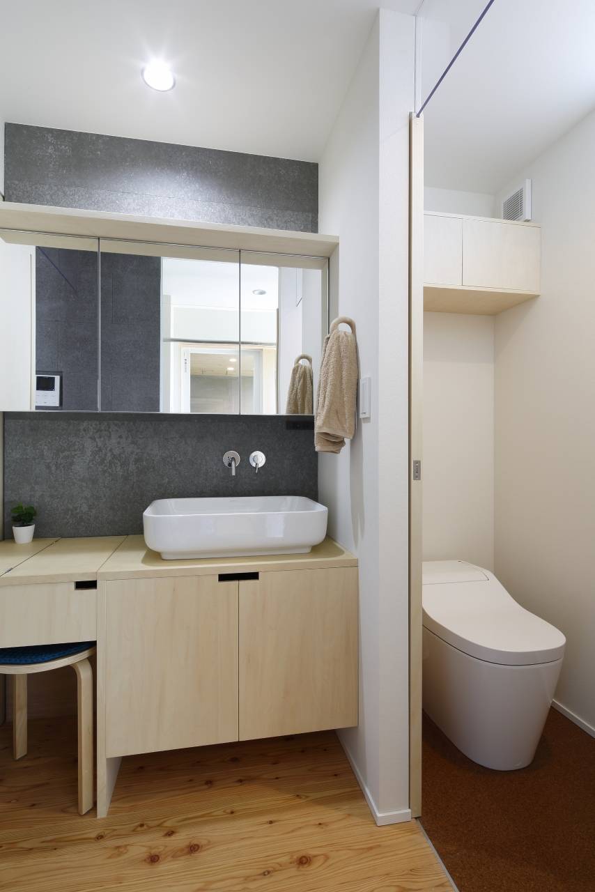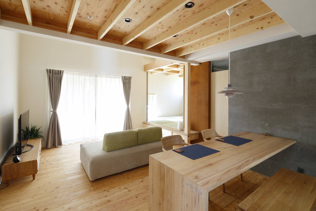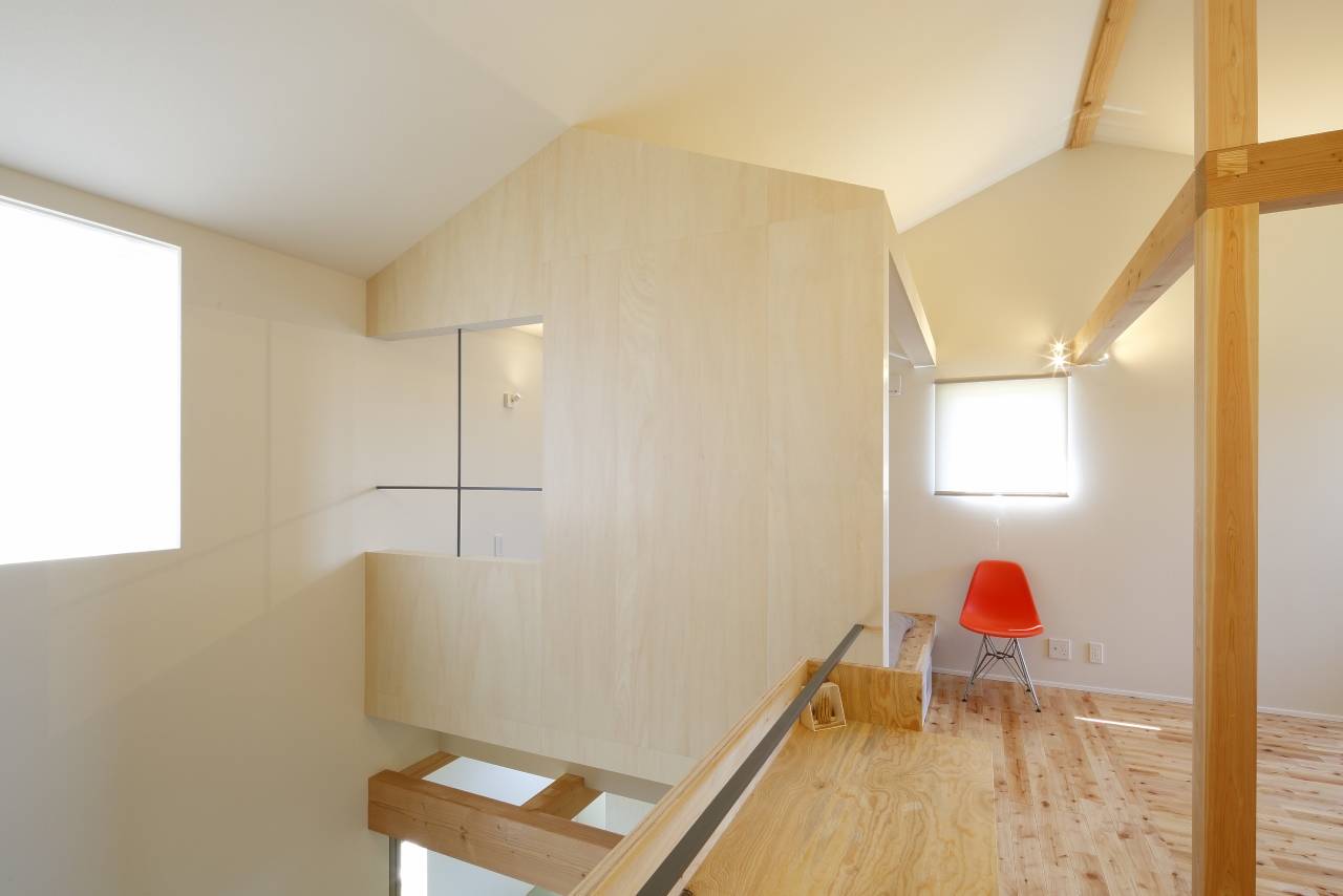 事務所スペース込みで28坪という決して広くはない面積ですが、使い方に合わせて他の空間と繋げて使えるようにすることで、空間をより広く使うことができます。また、一つの空間に複数の用途を与えることで、無駄のない空間構成としました。