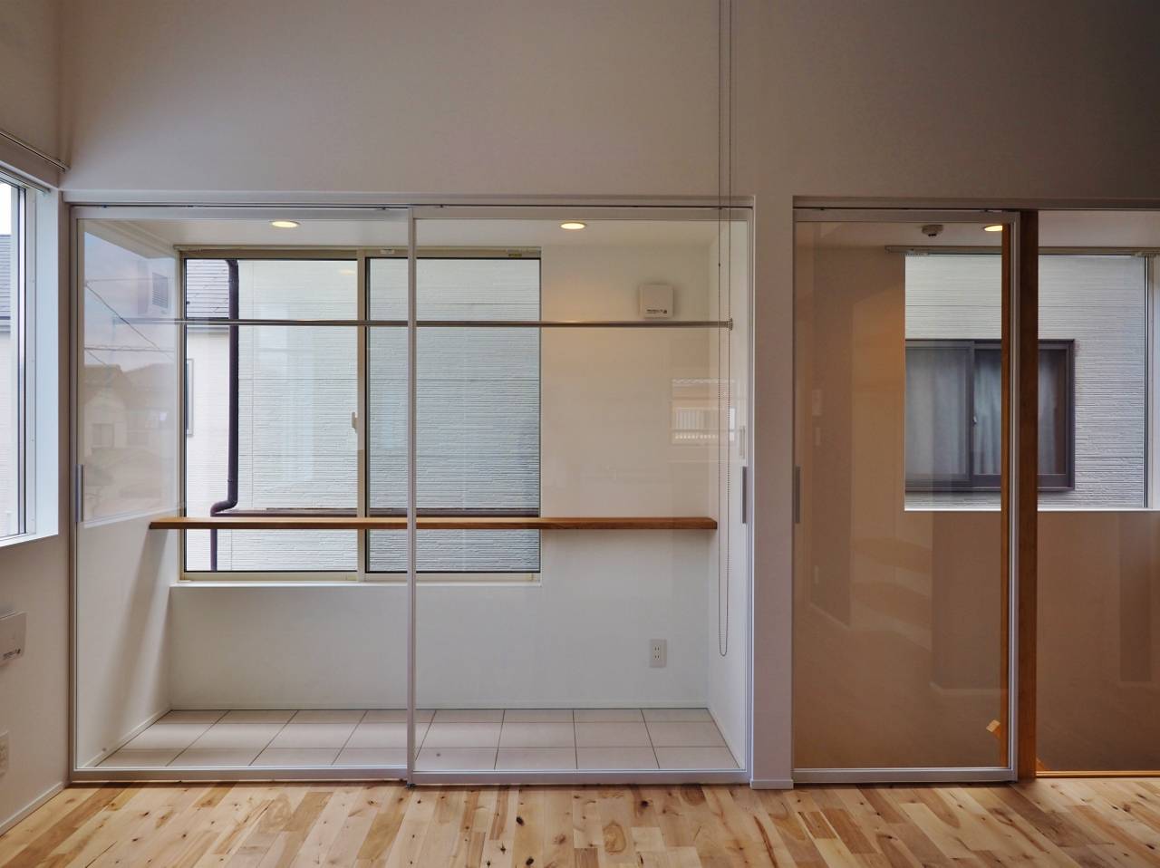 南側の住宅に影響されず、日当たりと風通しを確保する方法として、2階リビングを採用し、屋根形状を片流れにして、天井を勾配なりに仕上げることで、南側住戸の屋根の上から日当たりと風通しを確保しました。また、階段を南側に設けることで、1階にも階段上部からやさしい光が降り注ぎます。