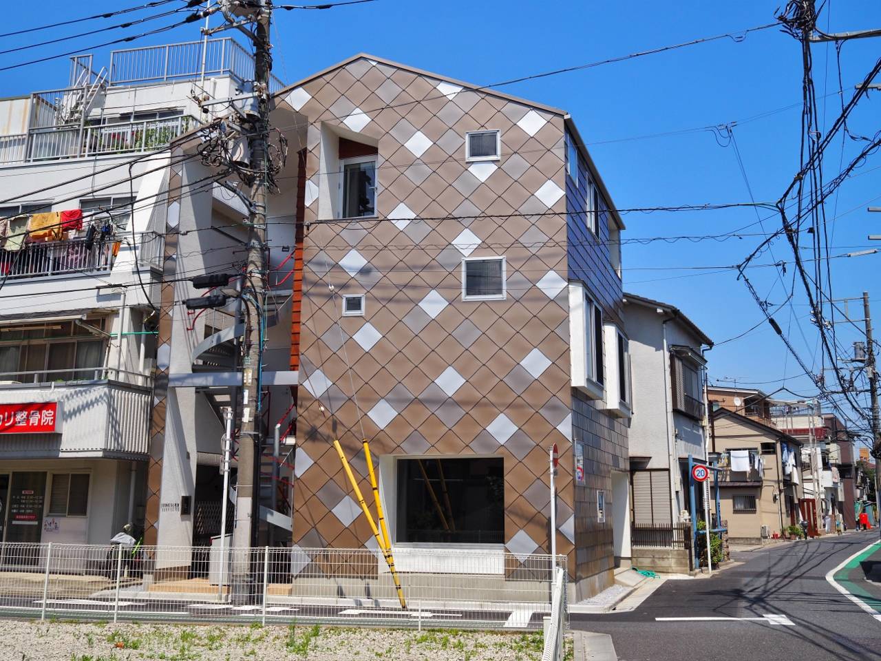 外壁はメインにガルバリウム鋼板を採用し、ゴールド、シルバー、ブラウンの三色を組み合わせ、周辺環境に配慮しながらも、他にはないような外観を作り上げました。
