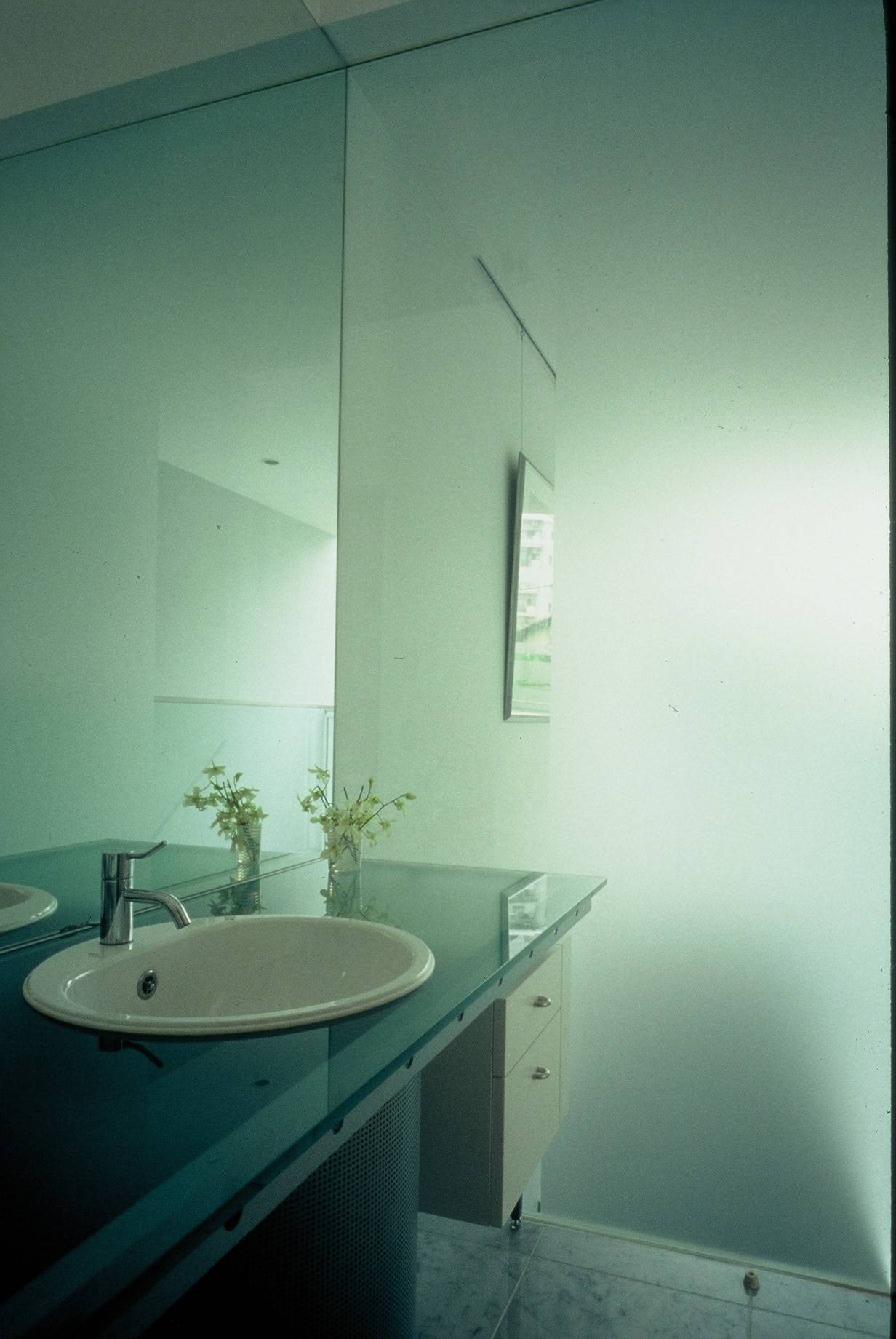 水回り:ここにもガラスが多様され、プライバシーを守りながら開放的な光が入ってきます。