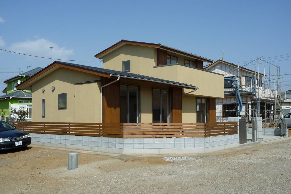 敷地は閑静な住宅地で約52坪の広さがあり、南西の角地で東西方向に幅広い矩形のため、日当たり良い状況の2階建て住宅になっています。
