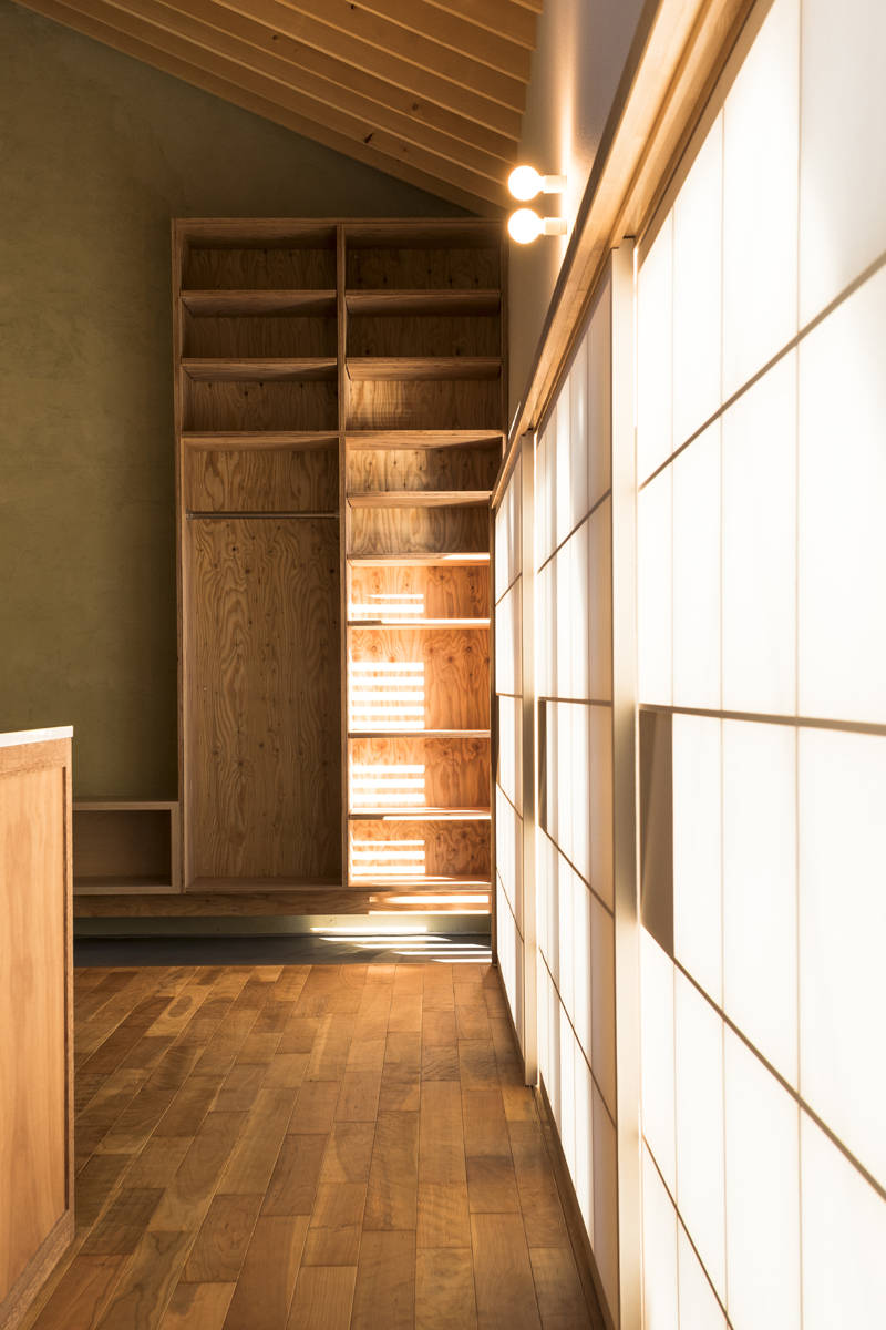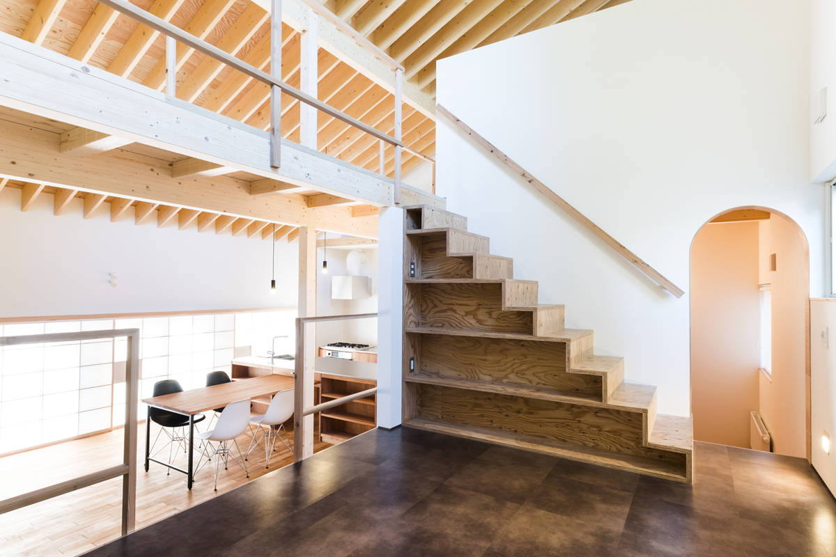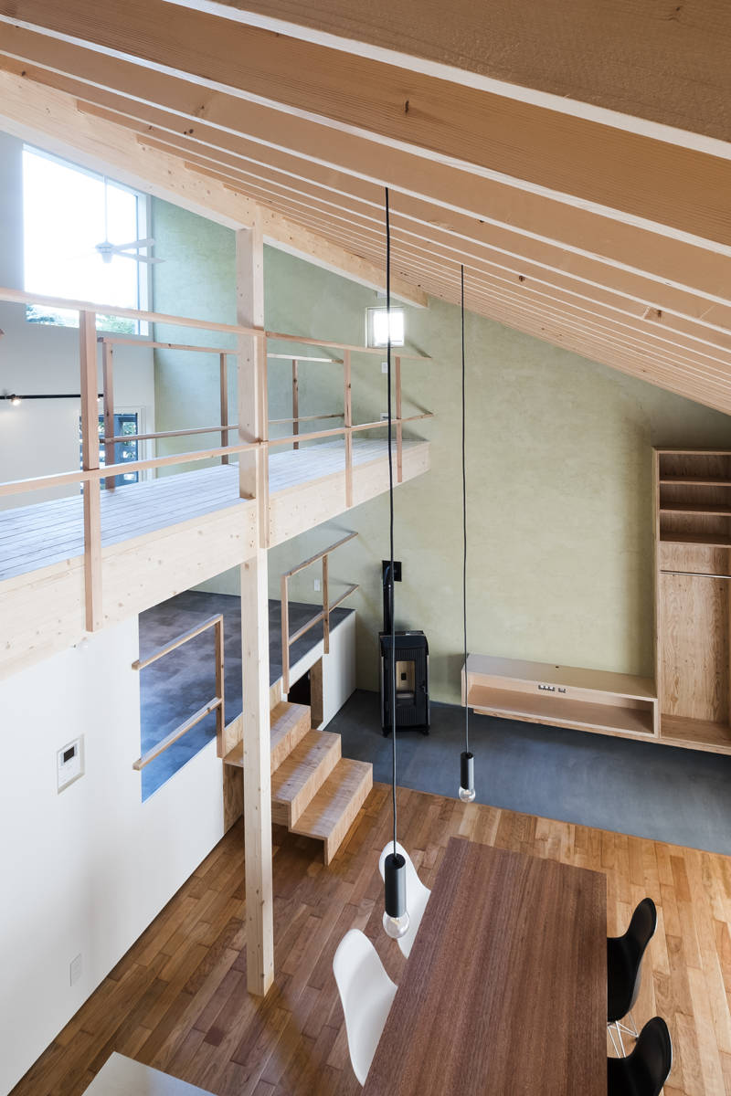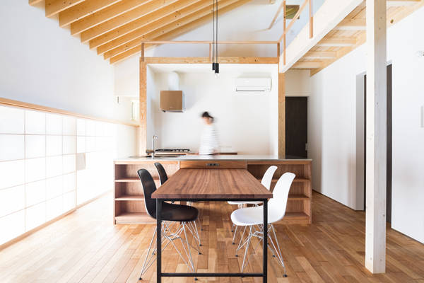 内部からはランダムに配置した開口部から隣接した公園の緑が眺められる。 対角線上に設けた開口部から気持ちのいい風も室内に流れこむ。