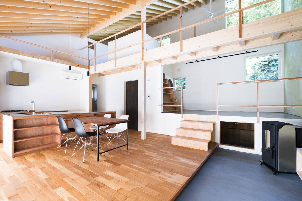 ペレットストーブからの柔らかい炎を眺めながらの癒しの空間・・・ そんな居心地のいい住宅がまた一つ完成しました。