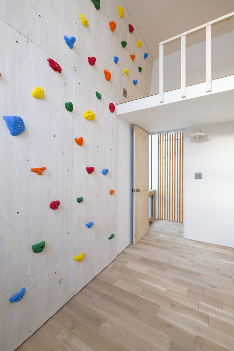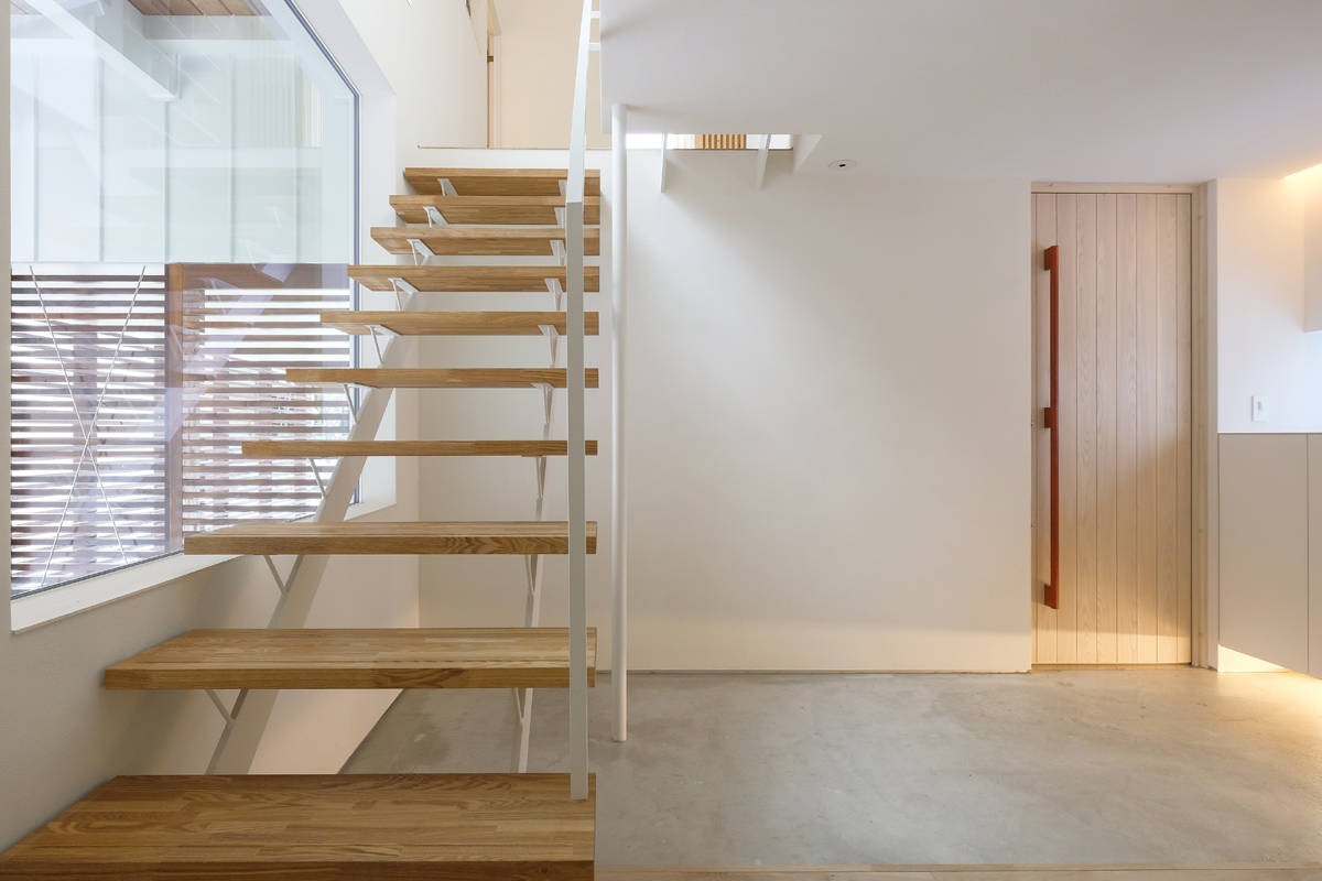 スキップフロアーを駆使しながら、高低差を利用してロフト空間や採光、通風を考慮した計画とした。