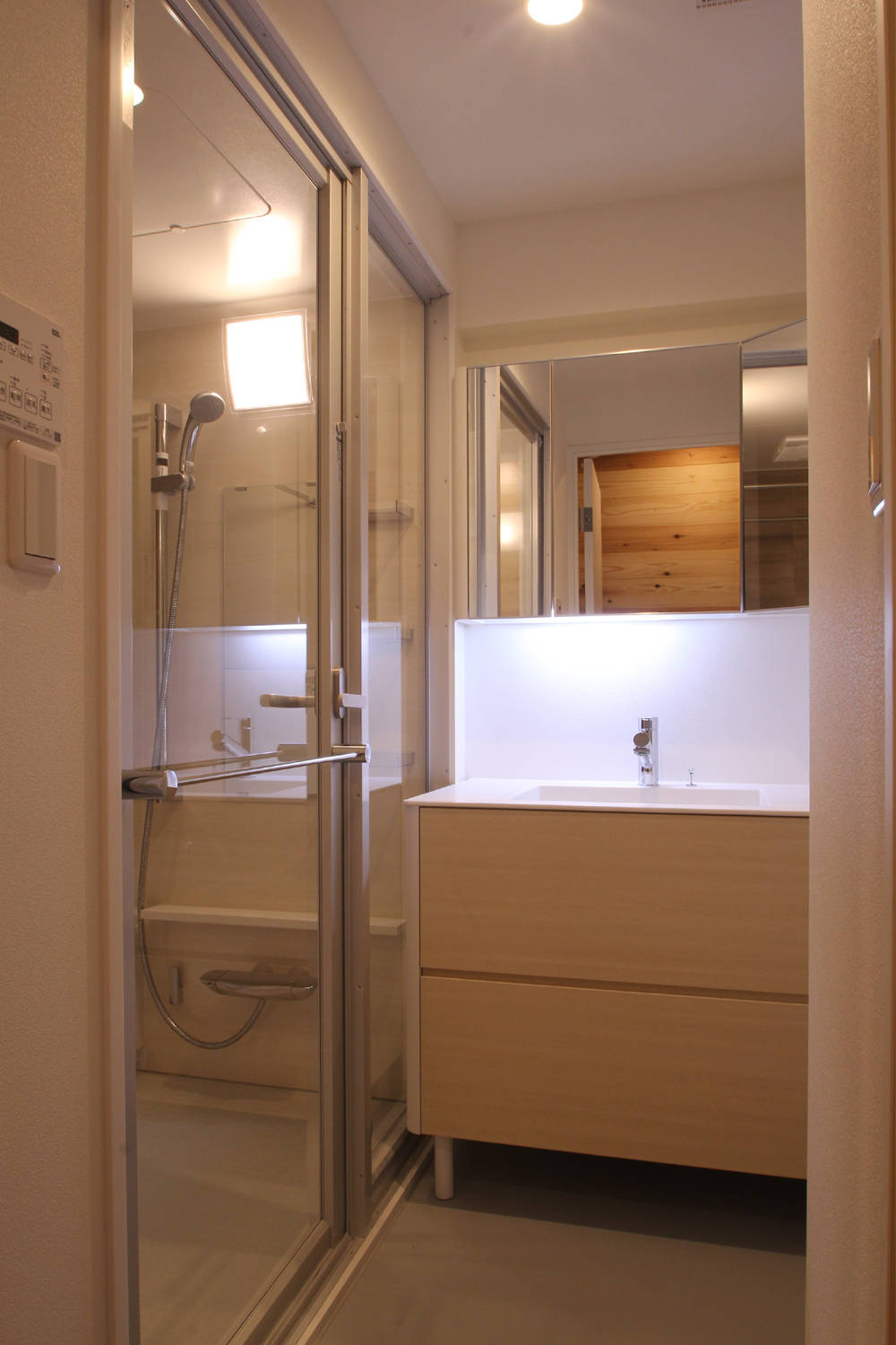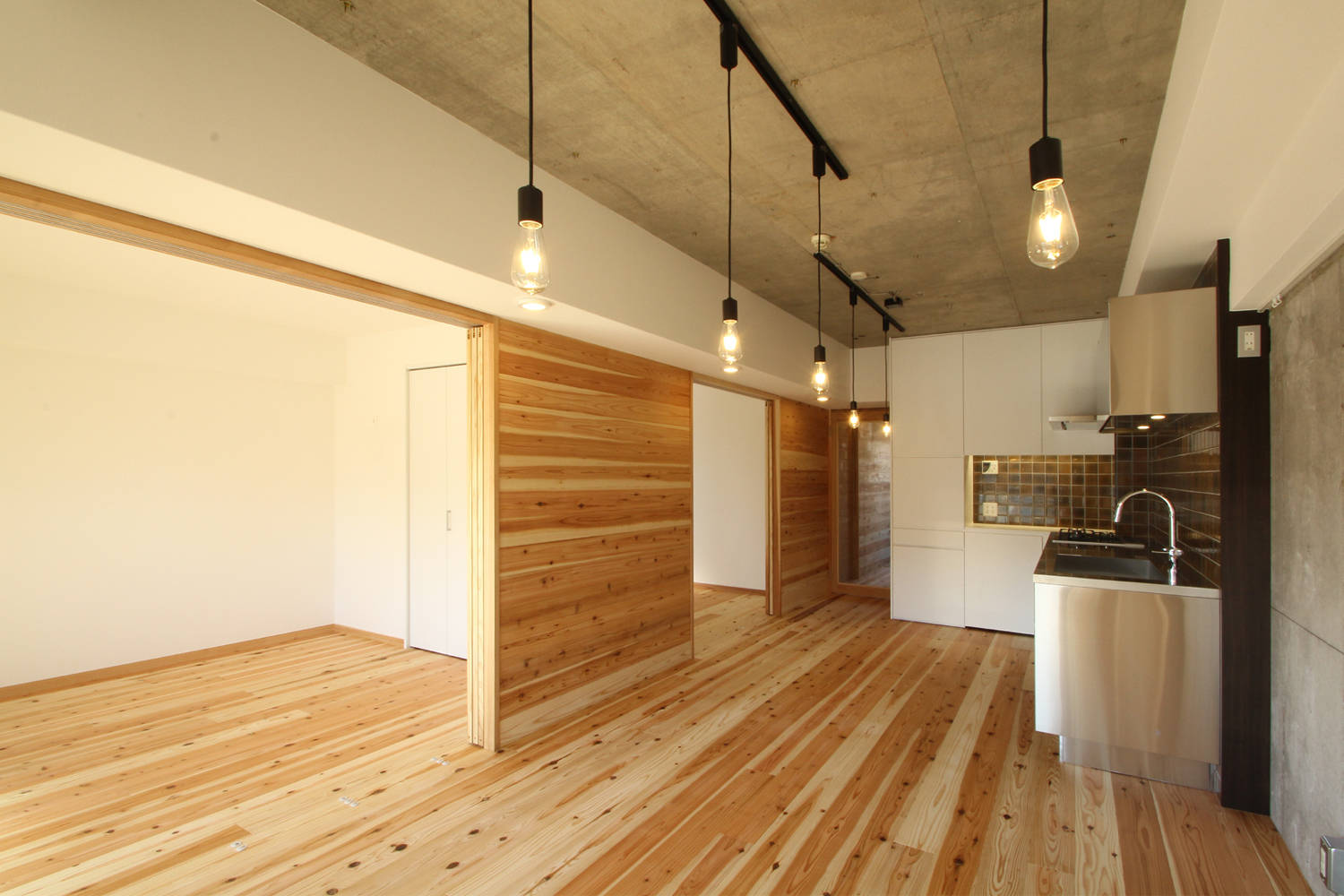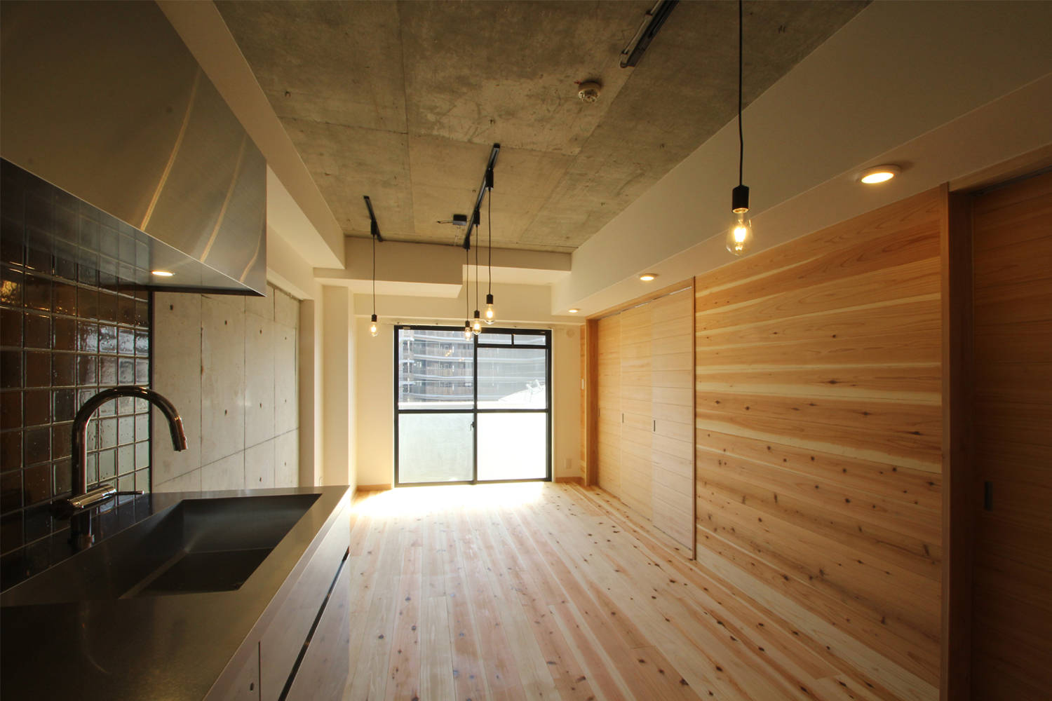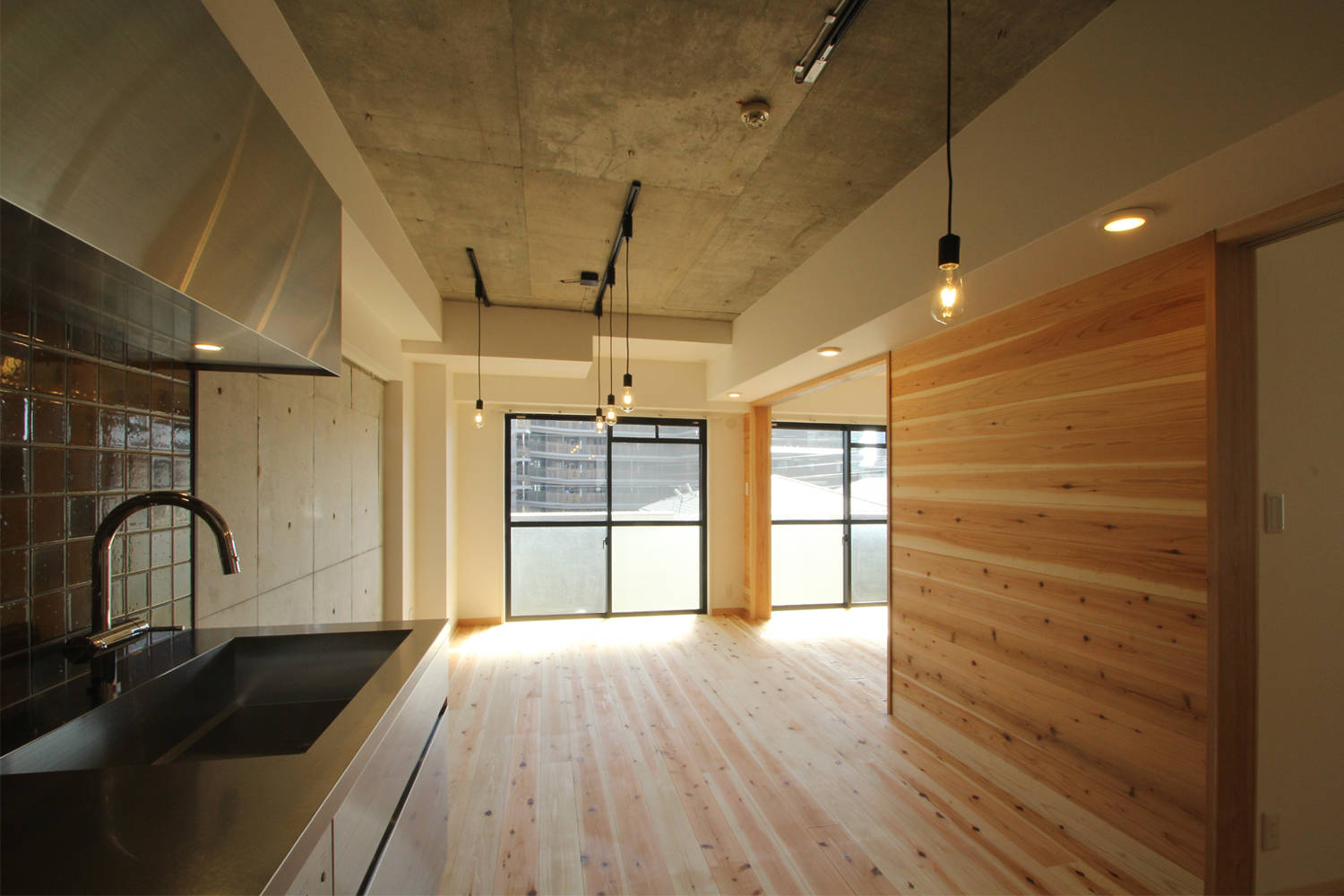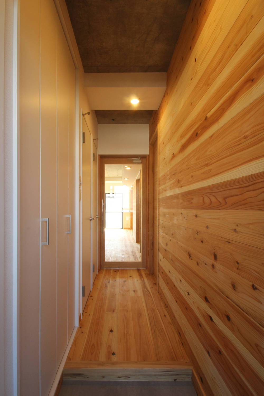 杉板貼の調湿効果によってRC造のマンションの結露対策にも出来る限りの配慮をしている。
