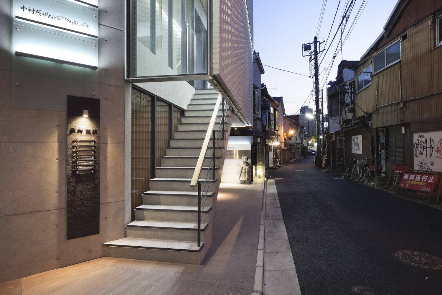 街路を建物内に引き込み、街と建物の接点を曖昧につなぎ、路地空間を形成した。