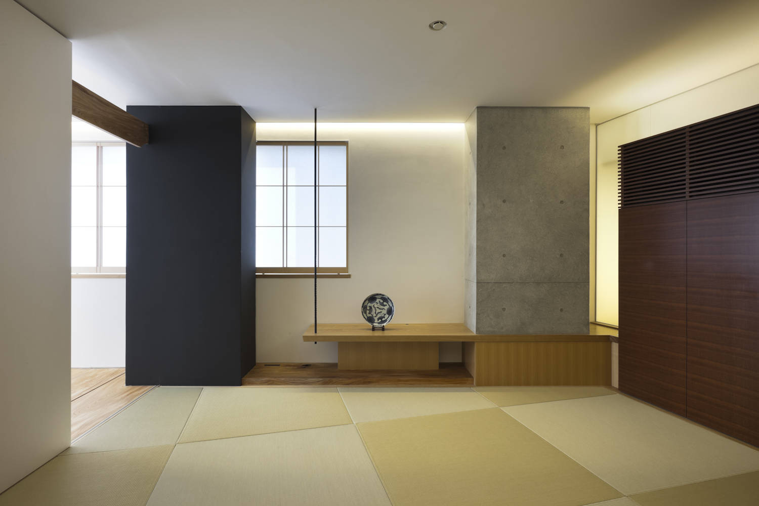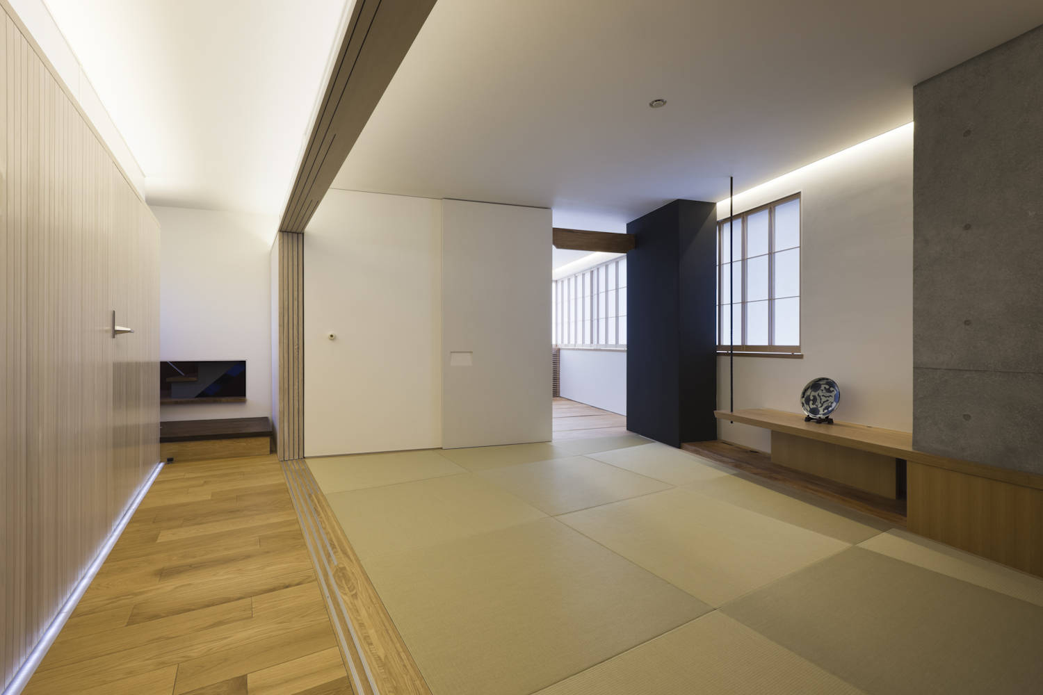 その土間的要素を持つ空間からEVで上がると、最上階にあるオーナー住戸へと続いていく。