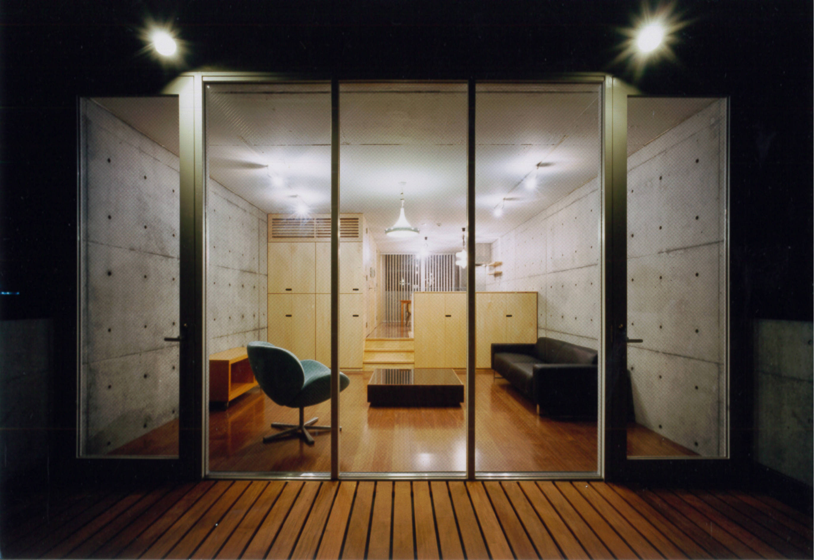 建物の短手方向に壁がないため、RCの門型フレームを組む事で構造を成り立たせている。