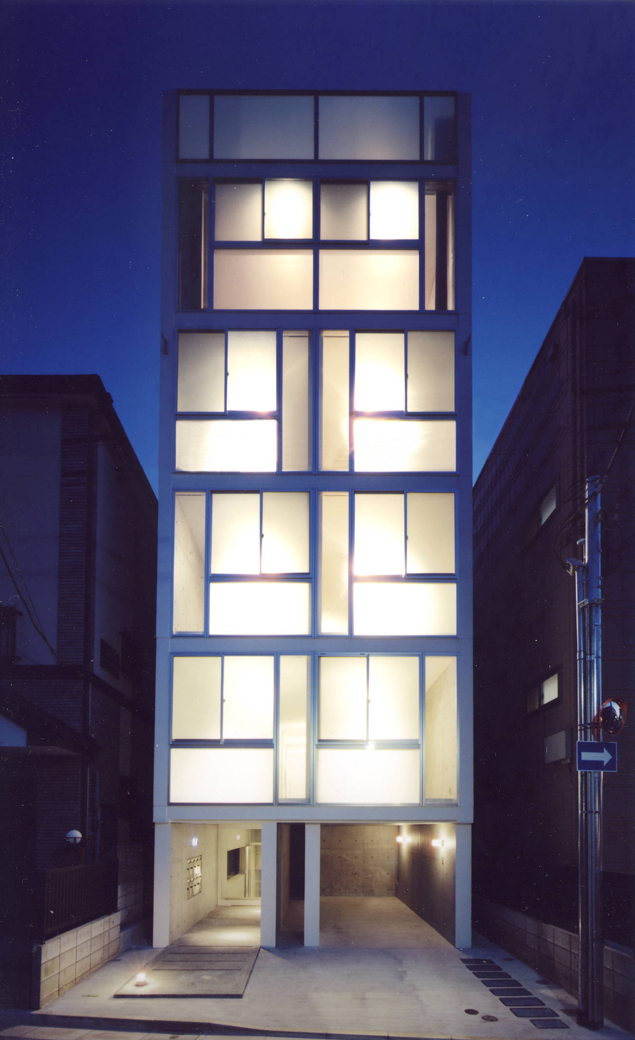 世田谷アパートメントは、間口が狭く細長い「うなぎの寝床」のような敷地に建つ地下1階、地上6階の共同住宅である。