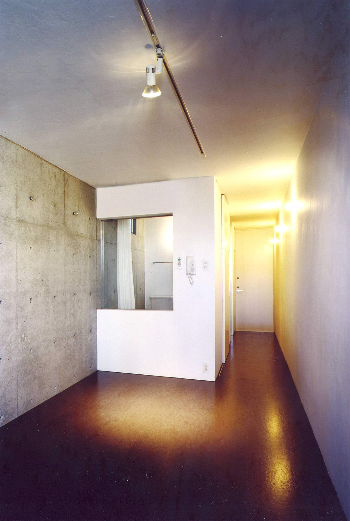 各住戸の間口は約2.5m×10mという住戸の中でキッチン・水場廻りをコンパクトに設置し、居室部分をできるだけ広く取れるように計画した。