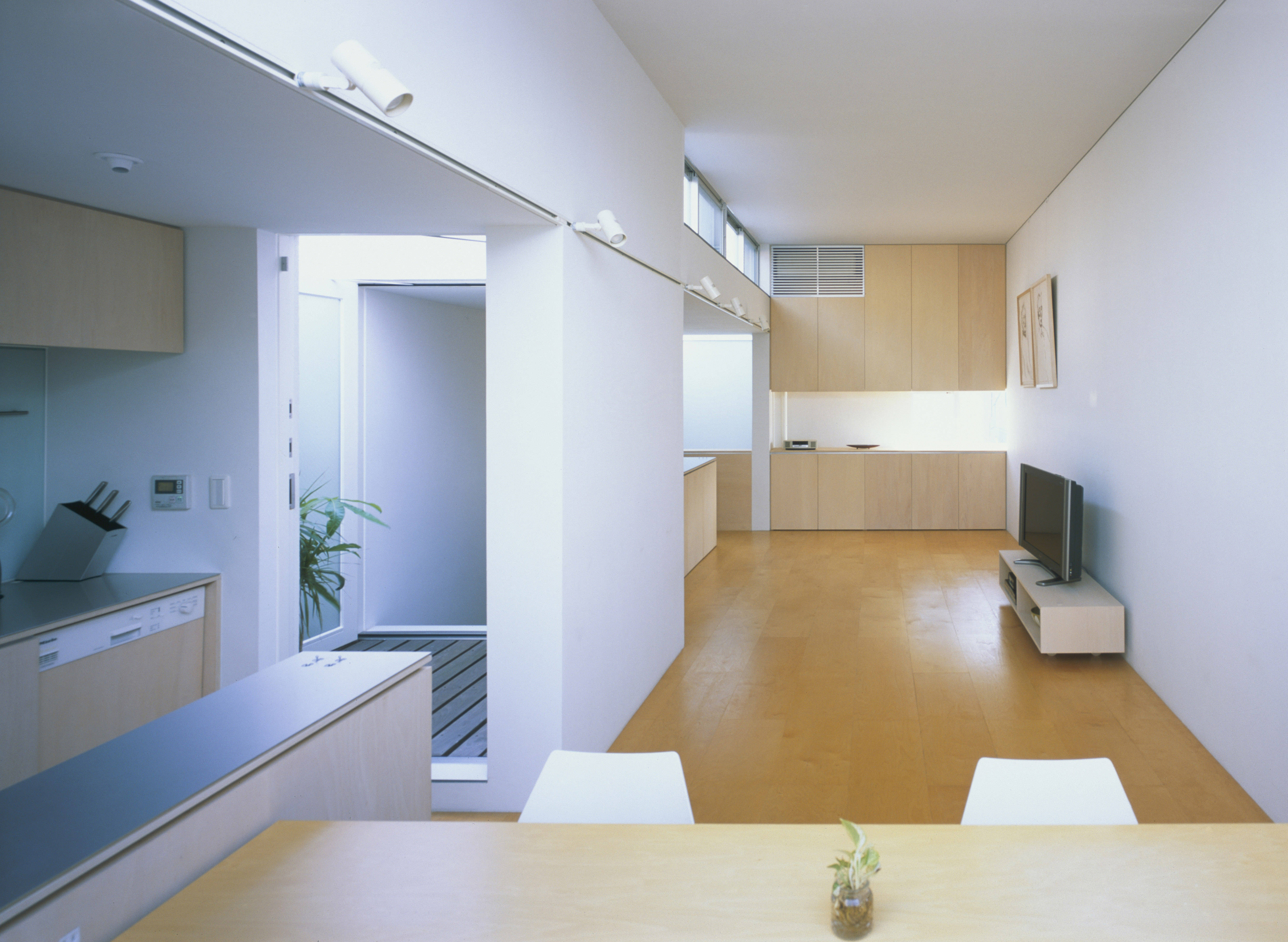 開口部に意味を持たせ、プライバシーを守りつつ、心地よい光が入るようにした。光の取り入れ方を工夫する事で一日中明るく、また風通しの良い健康的な住宅を目指した。