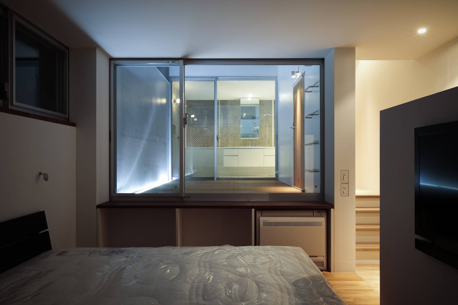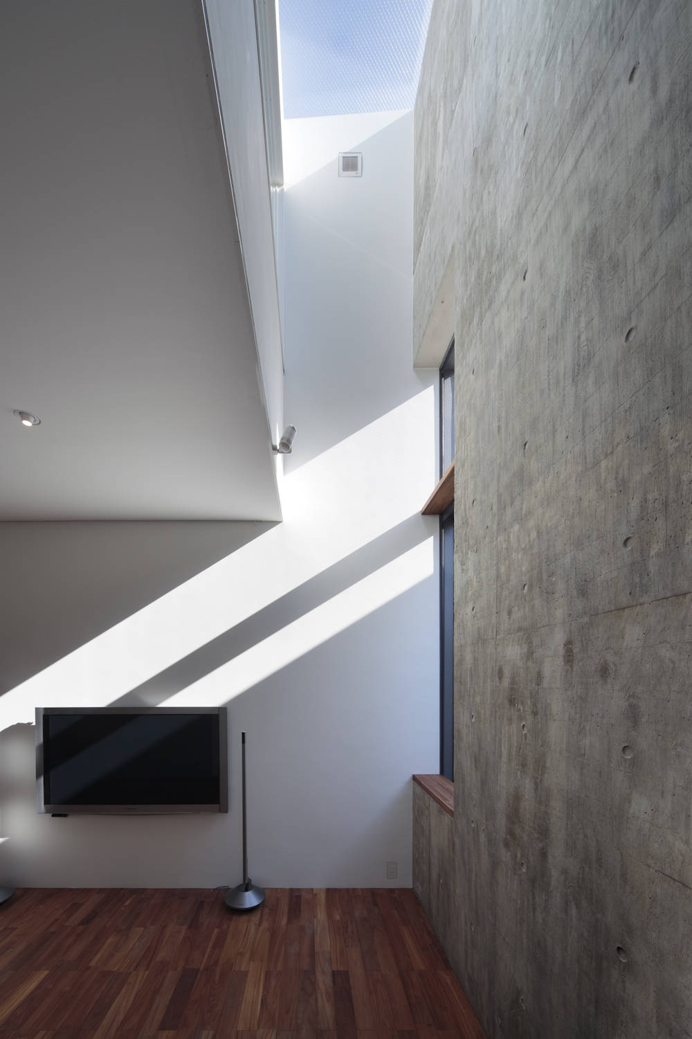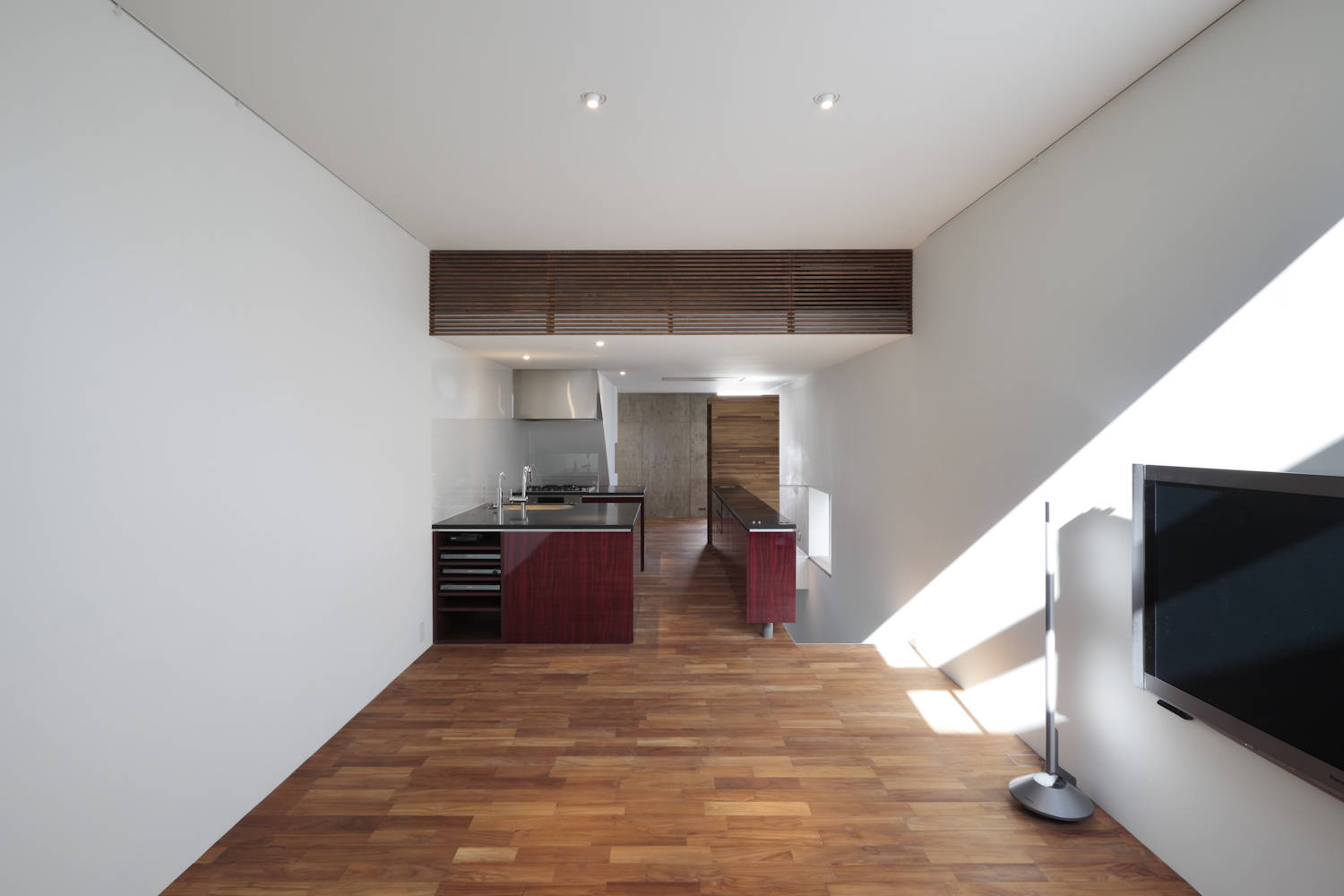 細長い敷地の中に、コンパクトに要素を凝縮し、大きくスペースを取るのではなく、用途に合わせた住空間を構成した。