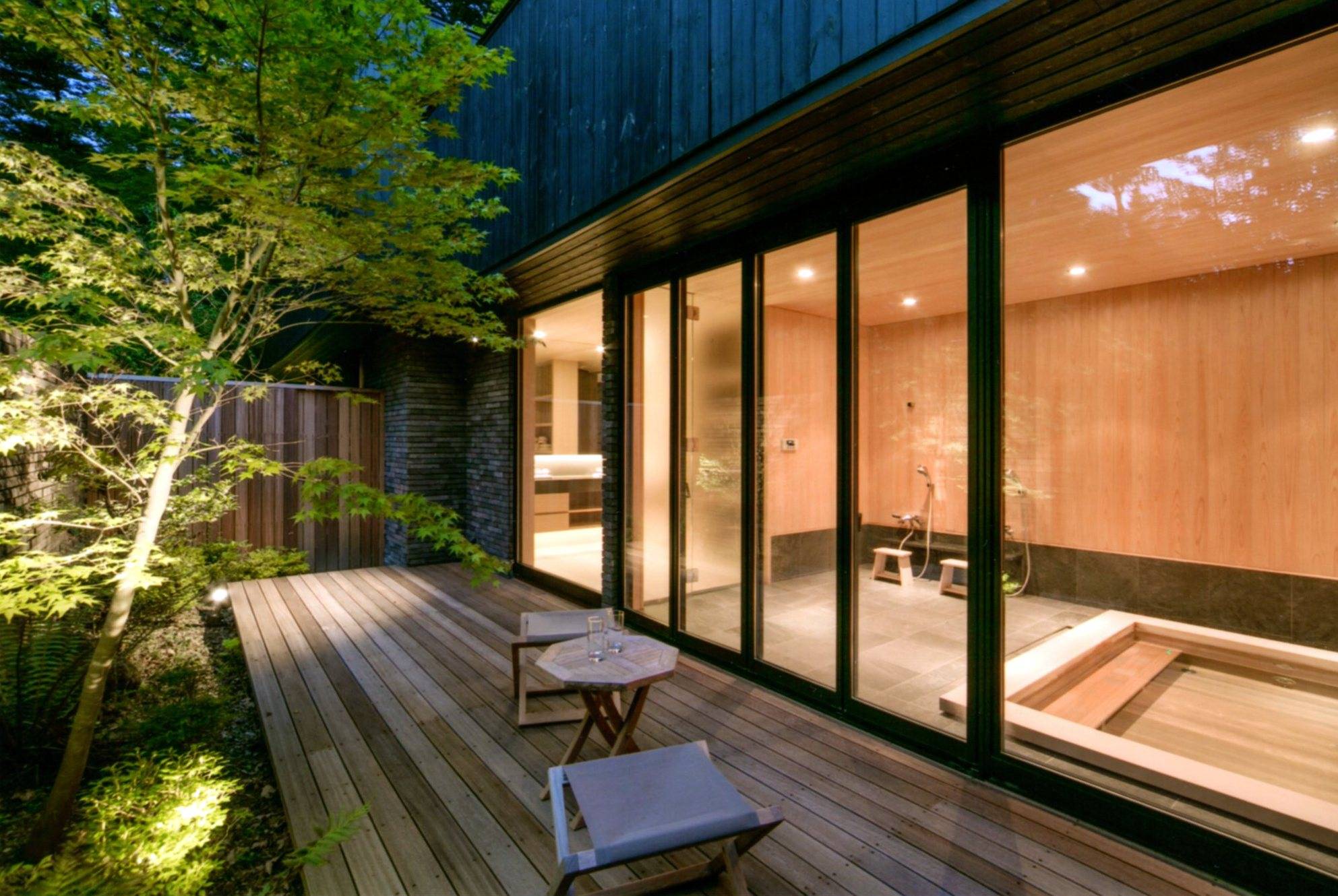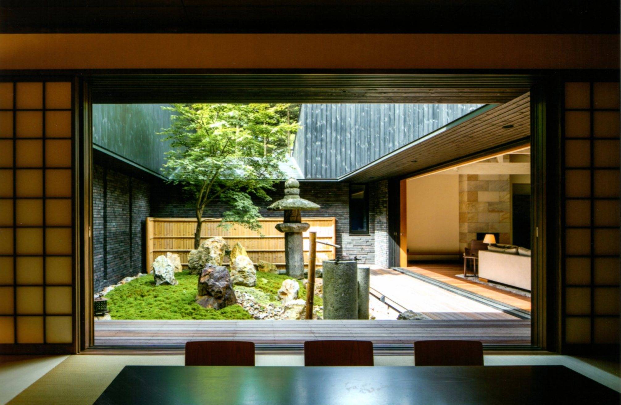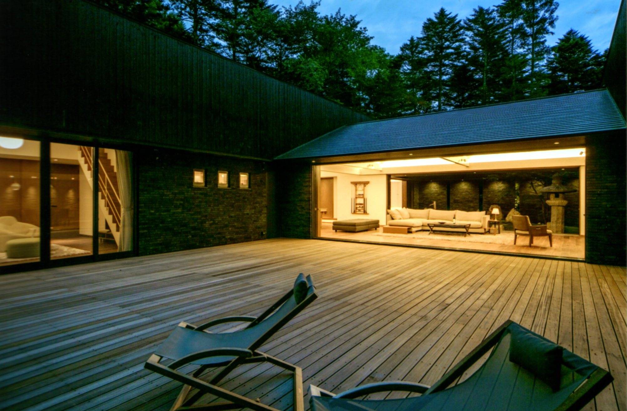 旧軽井沢、万平ホテルの近くの企業のゲストハウスです。U字の構成で2つの中庭があります。