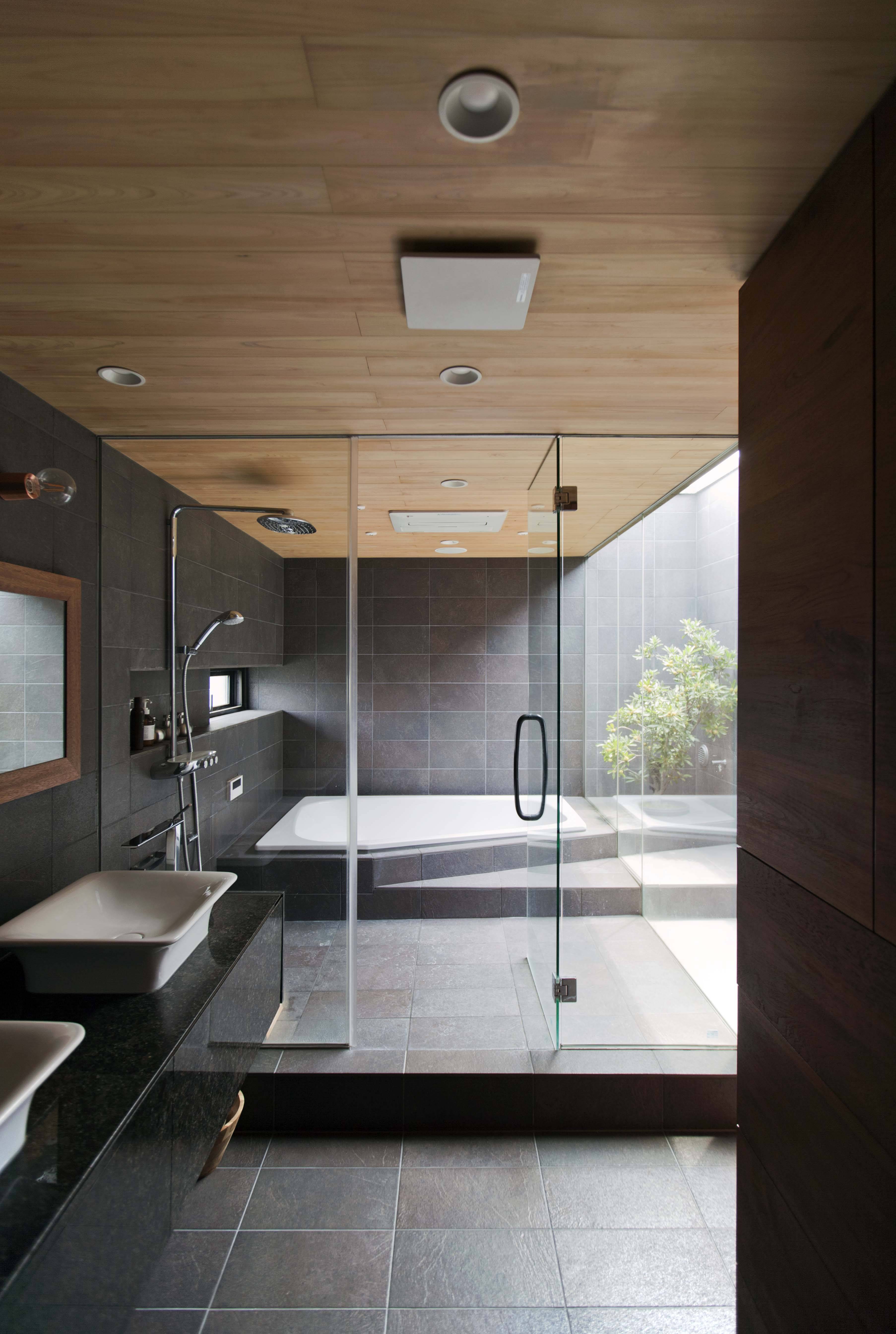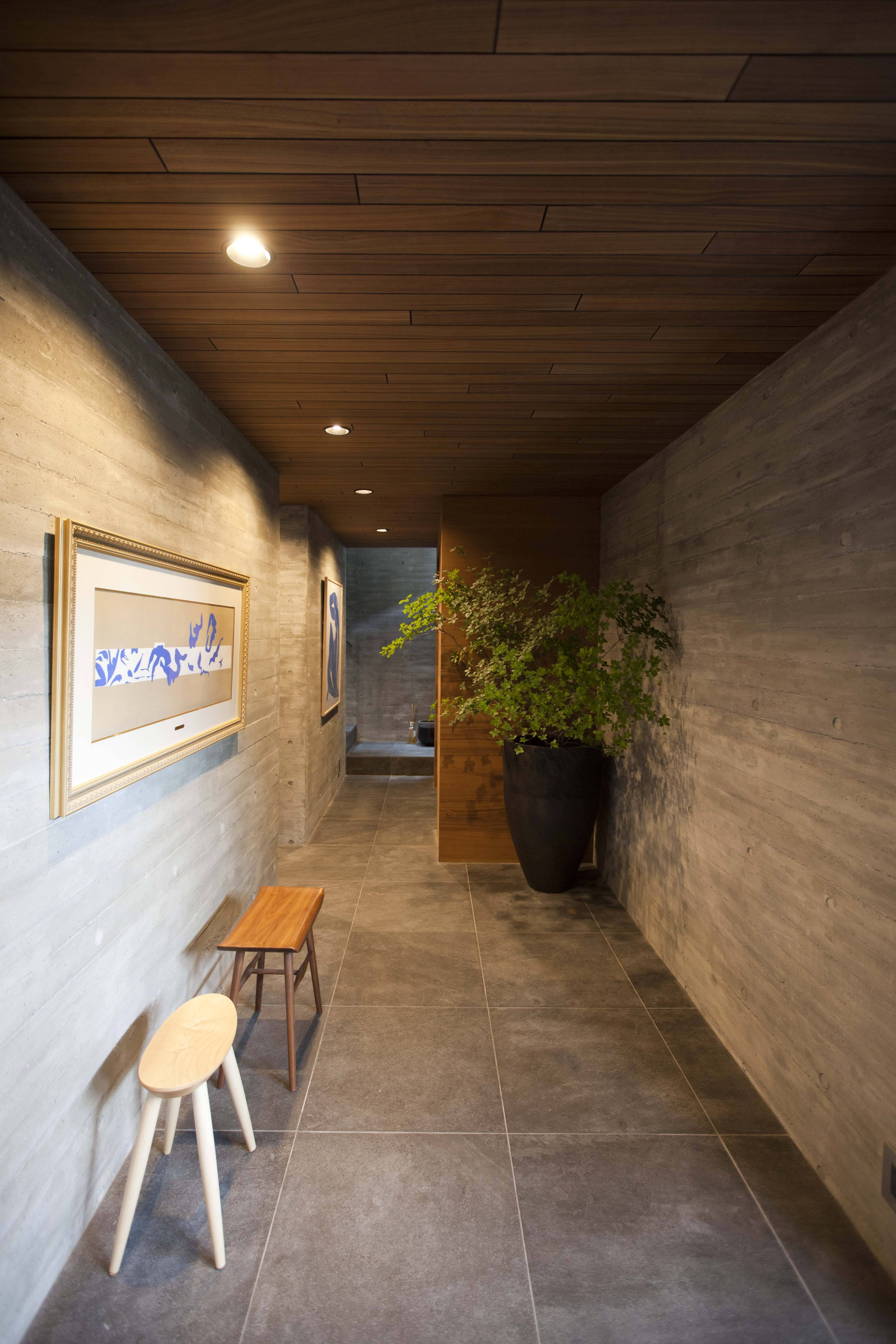 地下を最大限に利用した上面の開いた箱を立ち上げ、箱の内側にプライベートな諸室を入れ子状に配置し、それ以外を外部とパブリックな諸室として立体的に配置することで、プライベート性を確保しつつ、開放的な住環境を目論んだ。