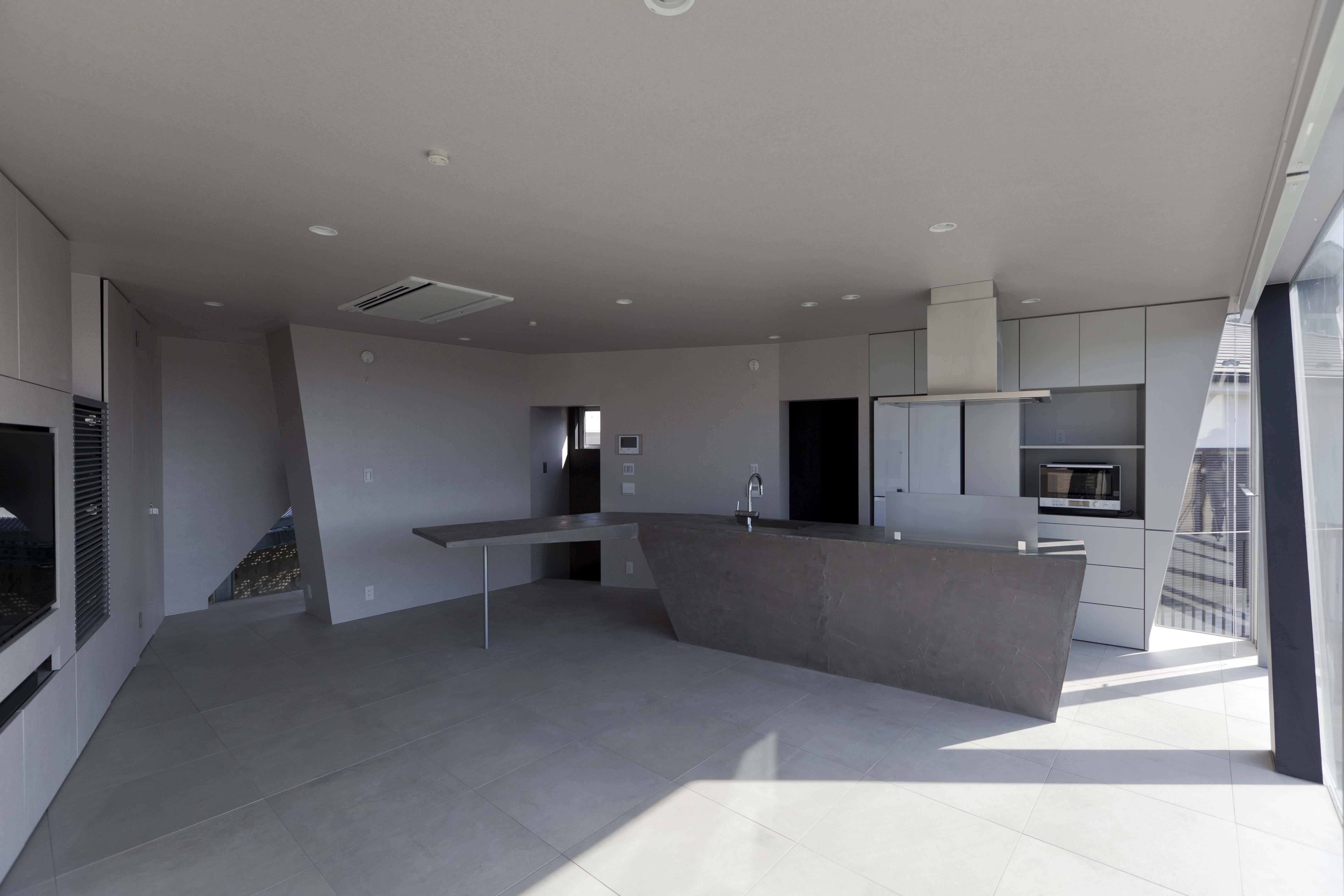 LDKの空間は斜め柱等で構成された家具と一体になった構造壁で支えられている
