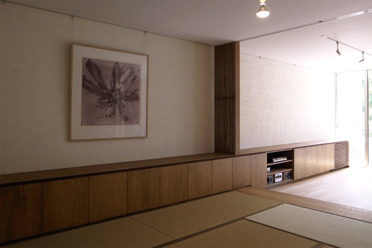 築年数は経っていますが、元の設計が素敵なので大きな間取りの変更をする必要がなく、断熱補強を施し、庭への抜けを重視した動線を複数設けて、風の抜けと光の抜けをよくしました。